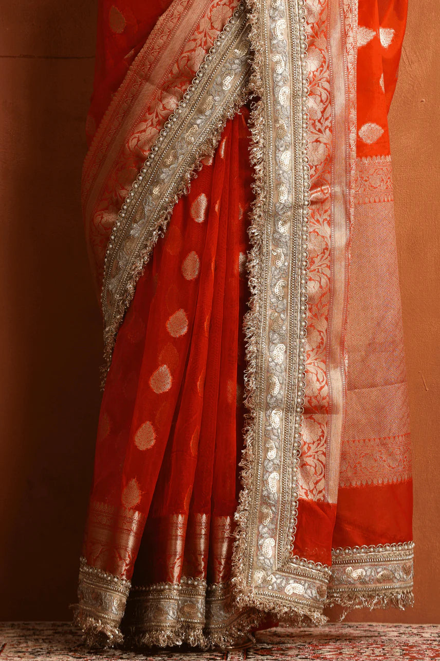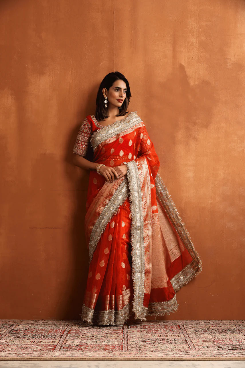 This saree is more than just bridal wear. It's a reminder of warmth, heritage, and everything a celebration means to you.