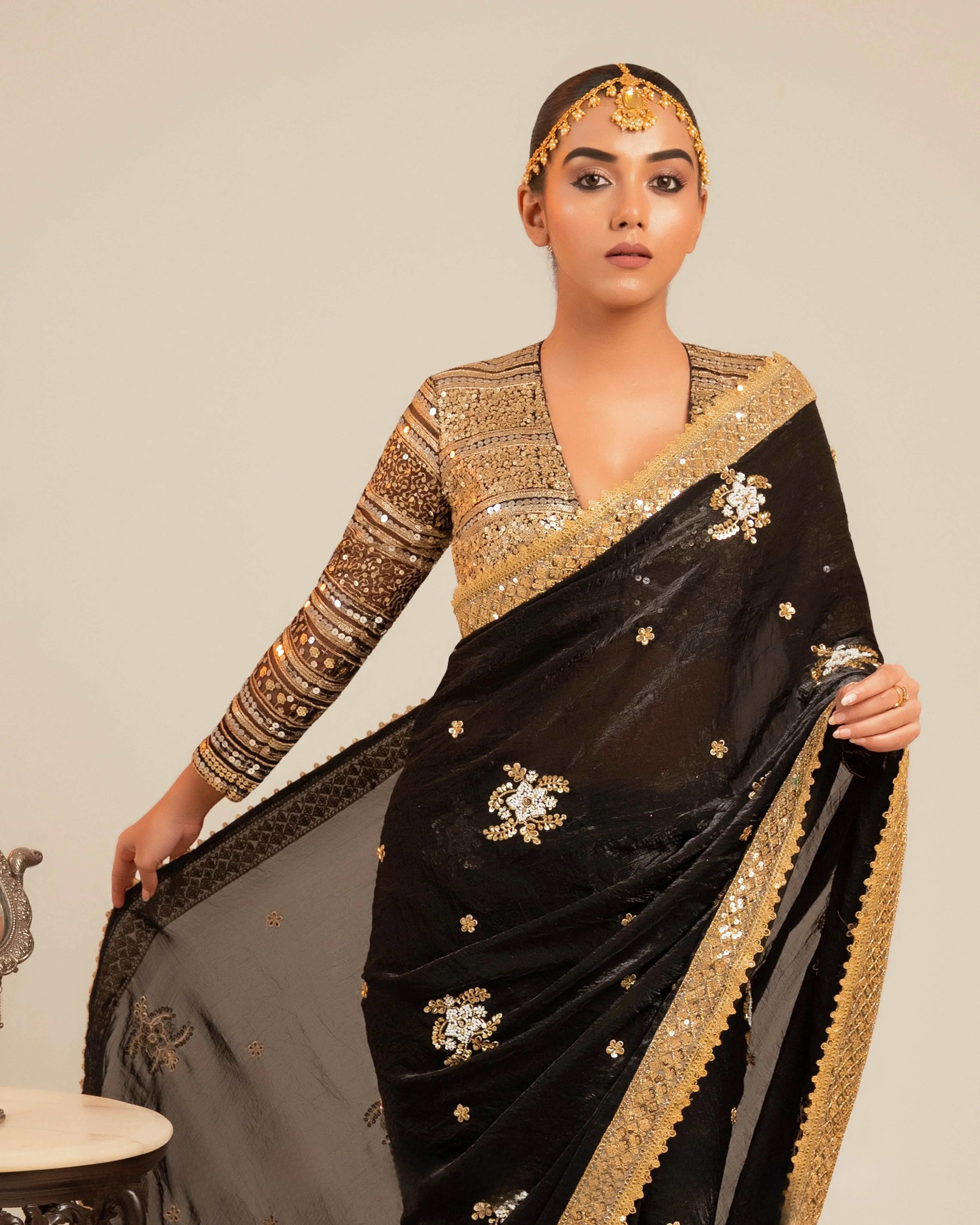 Why You’ll Love It – Black Butter Metallic Saree with Blouse