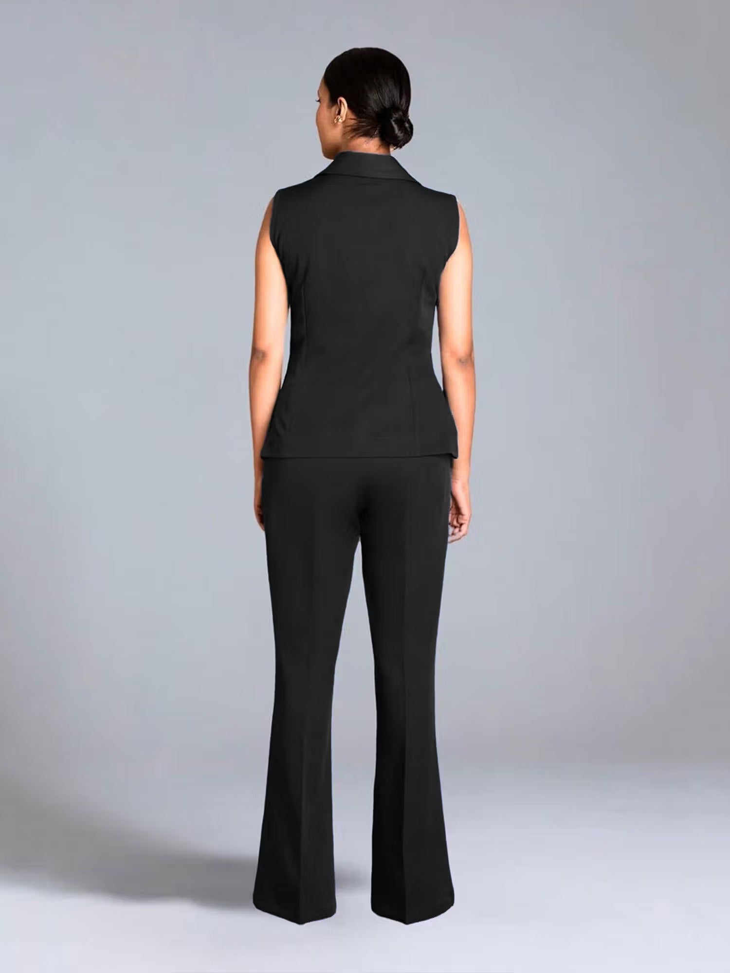 The Black Crepe Asymmetrical Fitted Co-Ord Set is a sleek, contemporary choice for effortless workwear glamour. Designed with a modern notched lapel neckline and sharp asymmetrical silhouette, this fitted co-ord delivers clean lines and refined structure. The slit pockets and button-fly closure add functional detailing that enhances its polished appeal. Ideal for office days, business meetings, or professional events where style meets subtle power dressing.