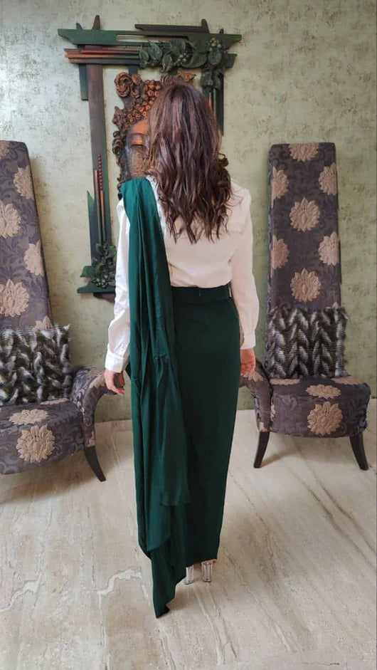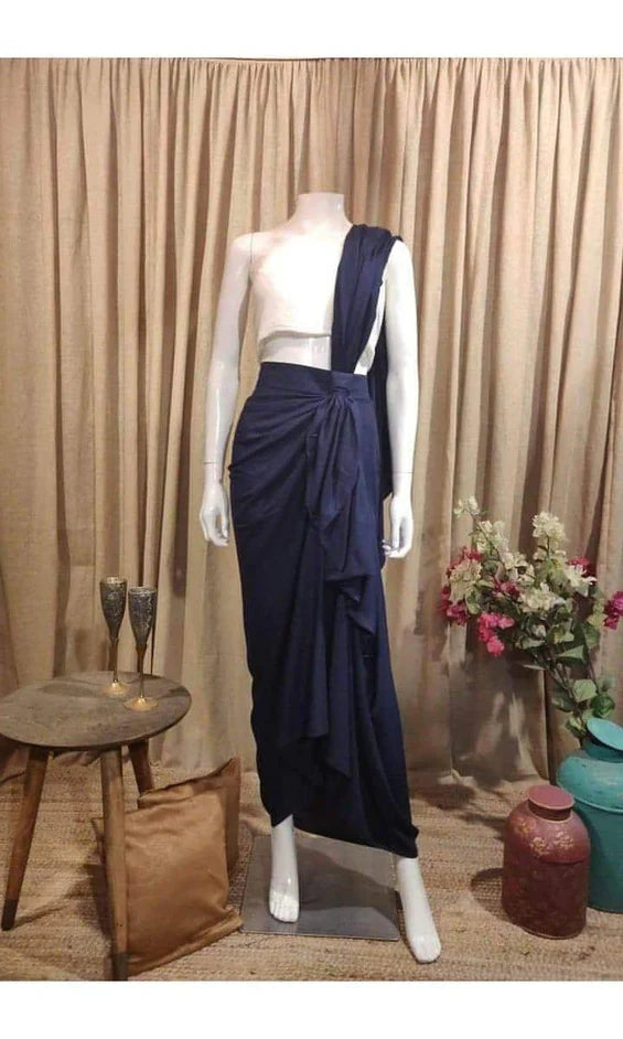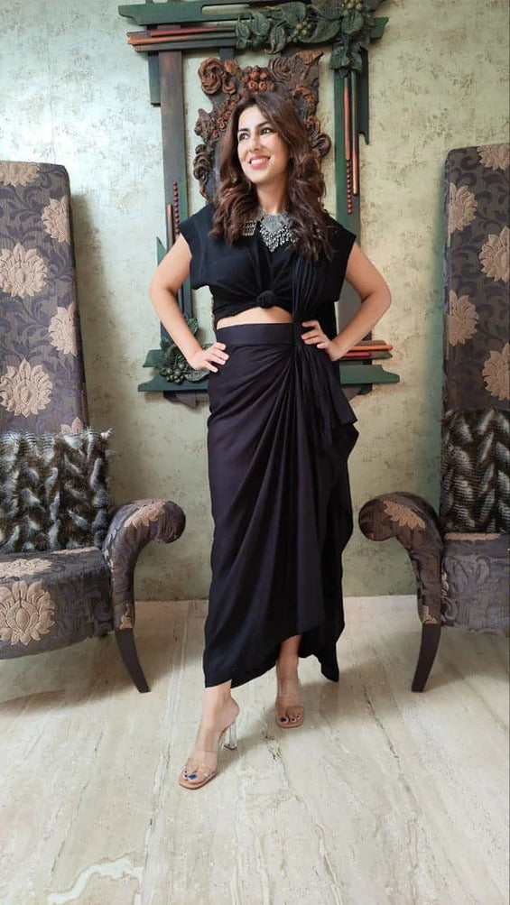 Redefine traditional elegance with this modern Black Draped Skirt Saree, designed for the woman who loves timeless style with a contemporary twist. Crafted from premium Liva Cotton, this pre-draped saree offers the elegance of a sari without the hassle of pleating or pinning. The soft, breathable fabric and fluid silhouette promise unmatched comfort, making it perfect for festive occasions, evening soirees, or cultural celebrations.