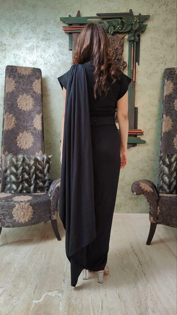 Add this exquisite Black Draped Skirt Saree to your collection and embrace the perfect balance of tradition and modern effortless style.