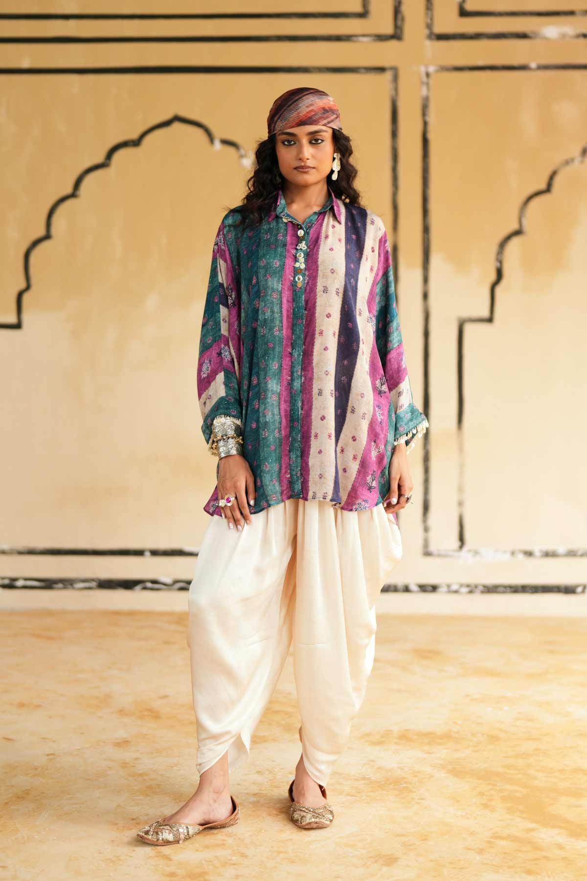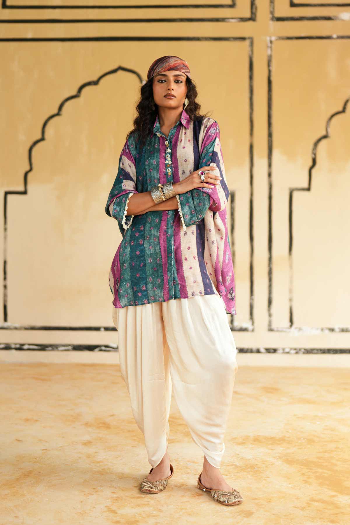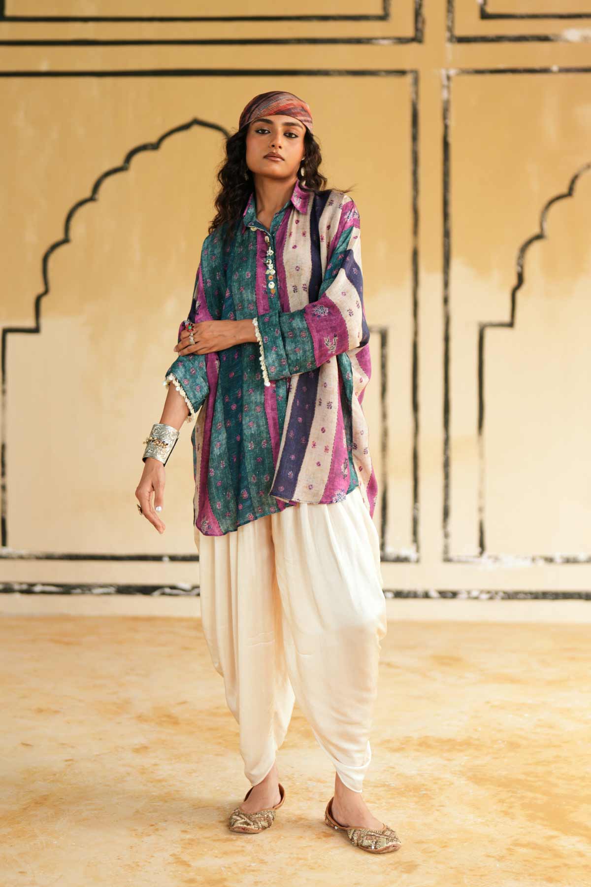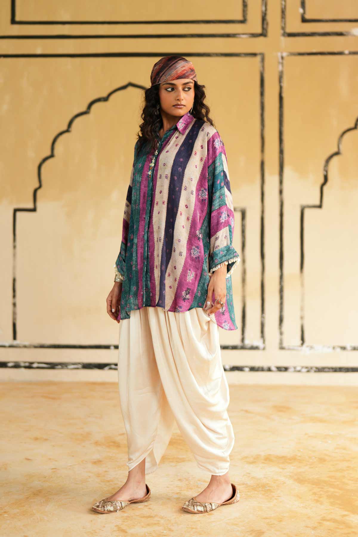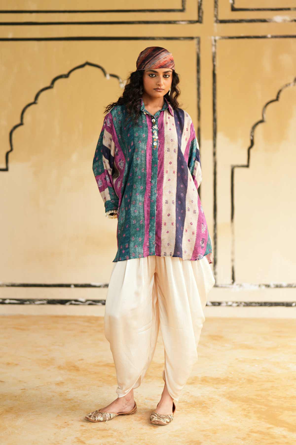 The Blush Cotton Silk & Satin Pokhran Set combines refined elegance with versatile comfort. Crafted with a printed cotton silk top and smooth satin pants or dhoti, the free-size loose top drapes effortlessly while the elasticated bottoms provide all-day ease. Its soft blush hue and delicate prints exude understated charm, making it perfect for festive gatherings, casual celebrations, or stylish daytime events. Customization options allow you to tailor the look for a personalized touch.