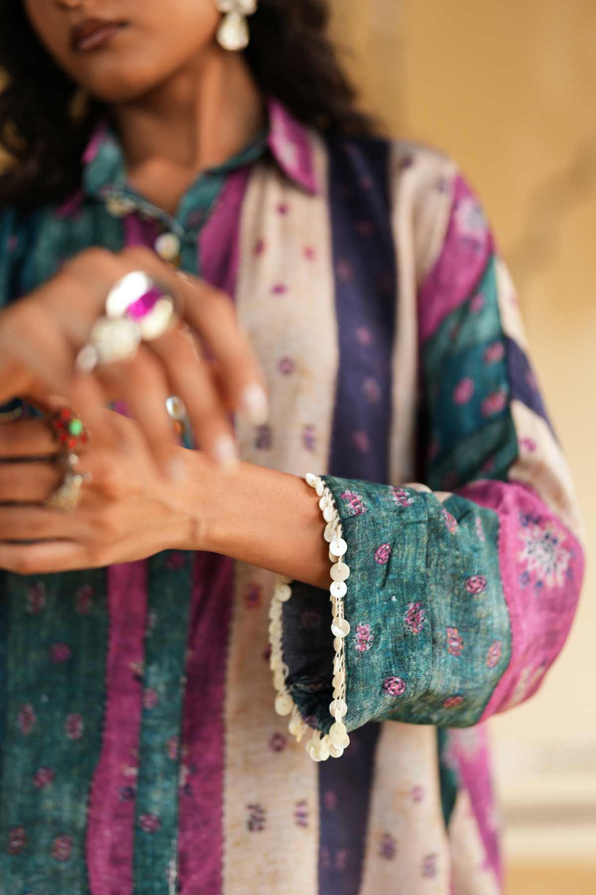 Add this Blush Cotton Silk & Satin Pokhran Set to your wardrobe for relaxed elegance, versatile styling, and soft feminine charm.