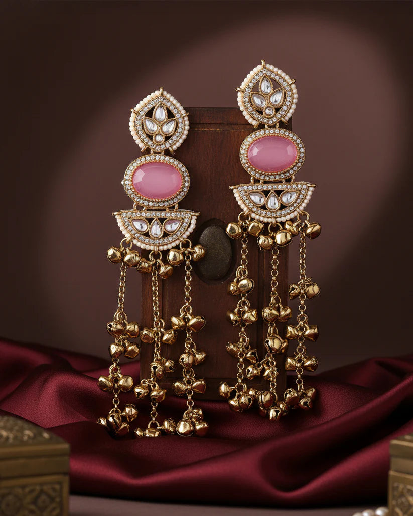Add a soft yet striking charm to your ethnic look with the Blush Parv Kashmiri Look Ghunghru Earrings from Reet Lifestyle. Inspired by traditional Kashmiri aesthetics, this beautifully detailed pair features delicate ghunghru accents that create graceful movement and a subtle festive vibe. Perfect for intimate celebrations, festive gatherings, or elevating your everyday ethnic wear, these earrings bring together heritage elegance and modern femininity in the most effortless way.