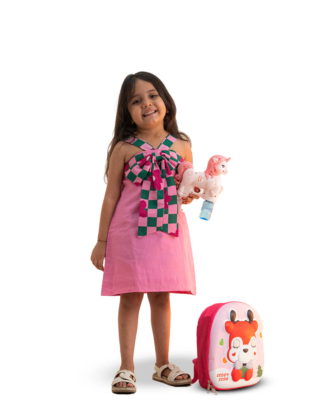Add the Blush Pink Bow-Accent Dress to your wardrobe and enjoy a perfect combination of elegance, comfort, and playful charm for every occasion.