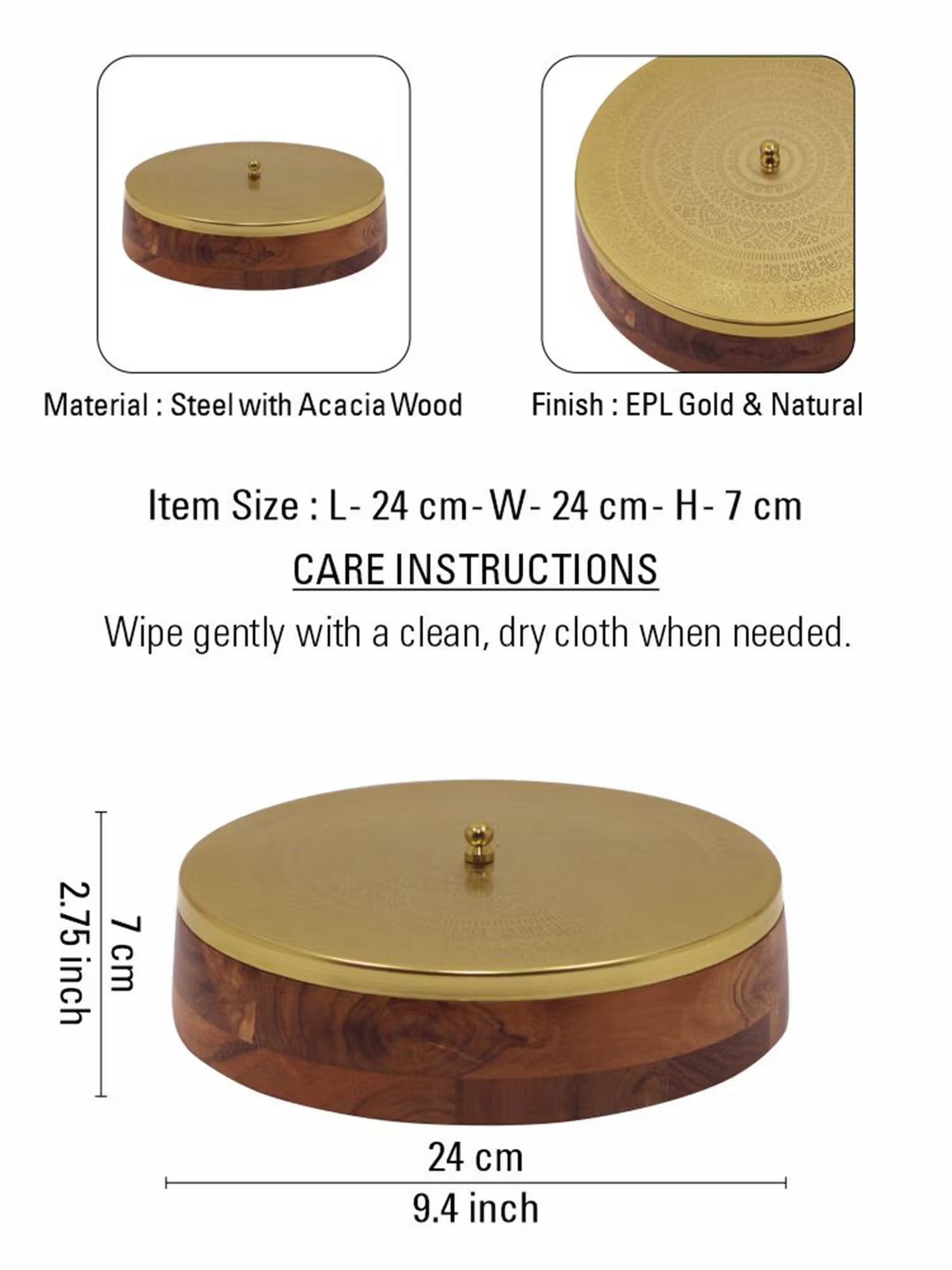 This BPA-Free Wooden Dry Fruit Storage Container brings natural elegance and convenience to your kitchen and dining space. Crafted from high-quality wood, it offers strong durability while maintaining a smooth, tasteful finish that complements modern and traditional homes. Its spacious design allows easy storage of dry fruits, nuts, snacks, and small treats, keeping them fresh, hygienic, and beautifully arranged. Perfect for daily use and a stylish addition for festive gifting, dining tables, or pantry organization.