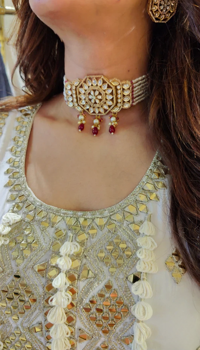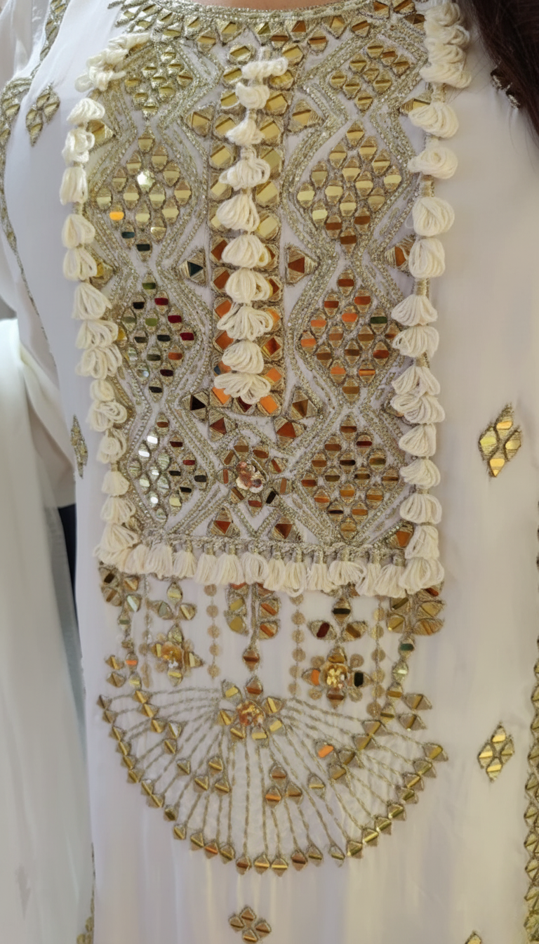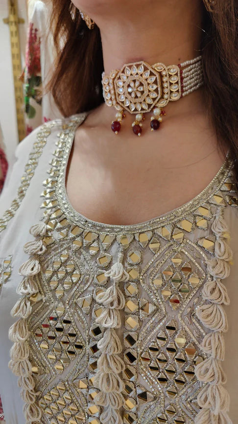 Add this timeless mirror work ensemble to your collection and elevate every celebration with effortless grace and luxury.