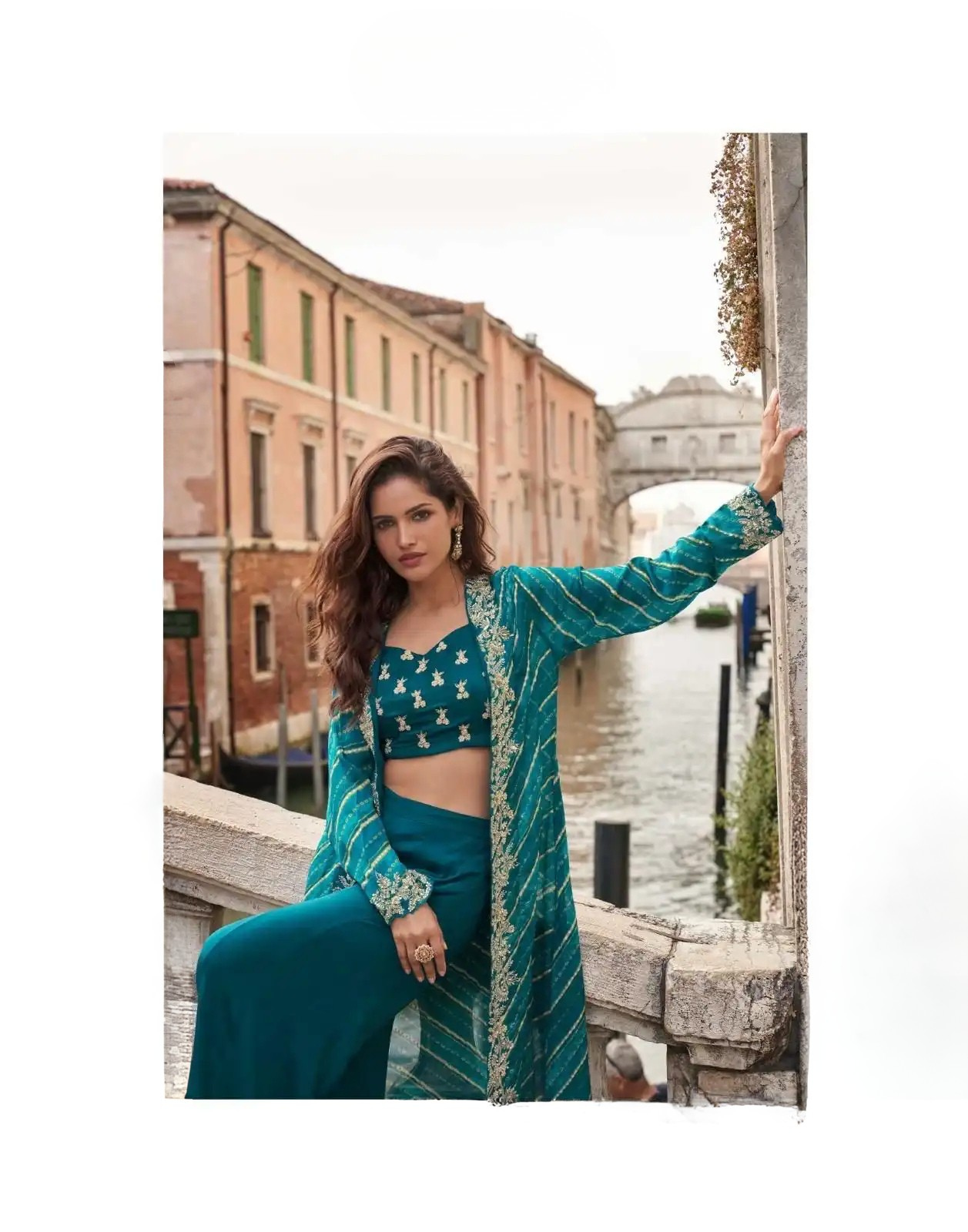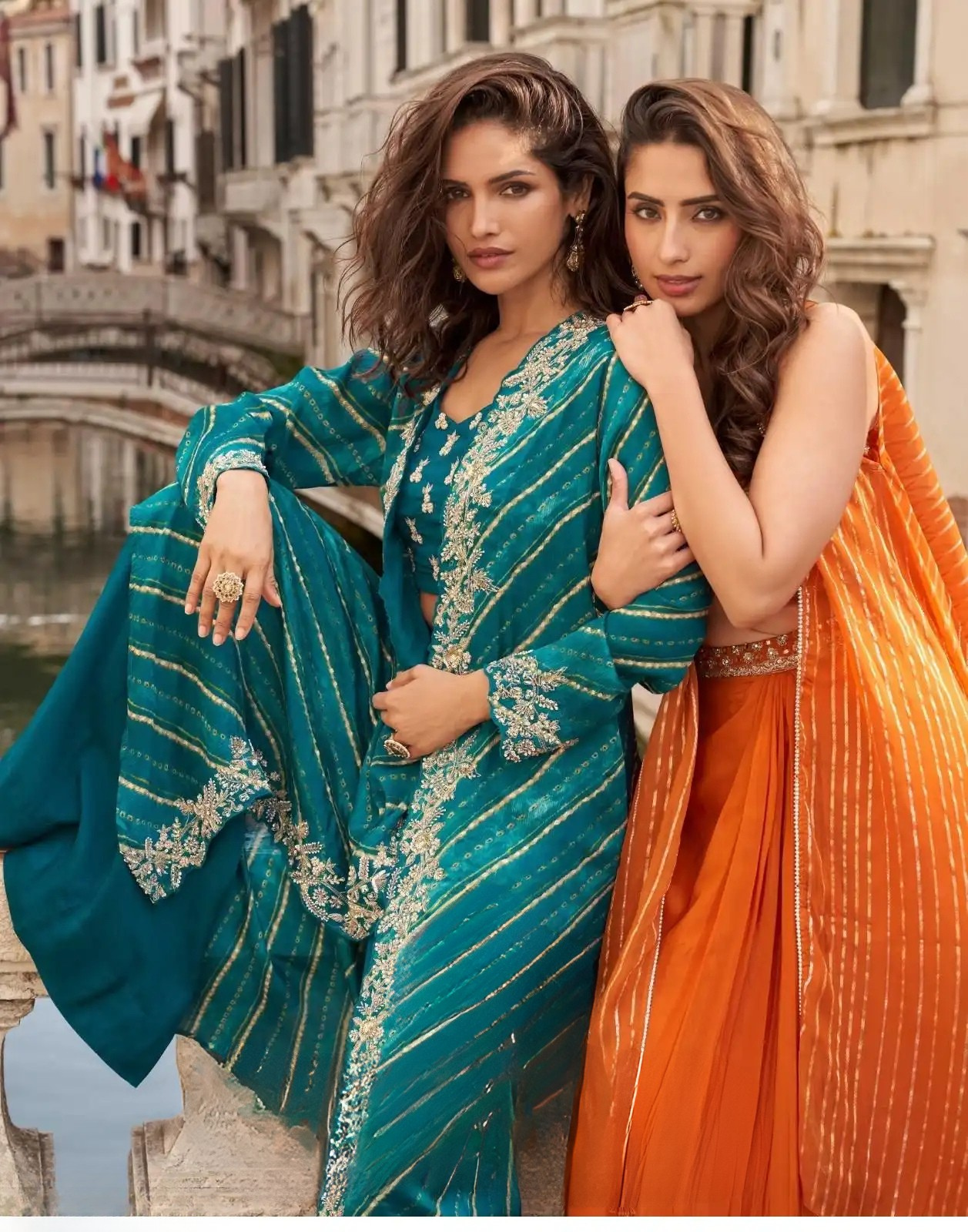 Add the Chinnon Silk Embroidered Western Set to your festive wardrobe for a statement-making blend of elegance, color, and handcrafted artistry.