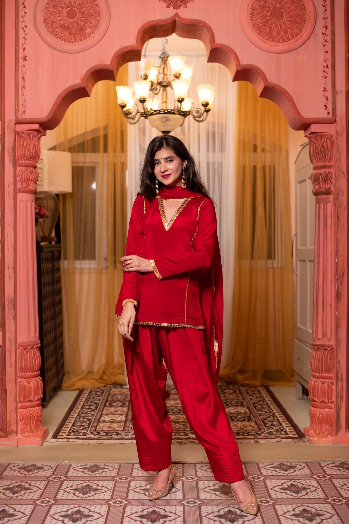 Why You’ll Love It – Red Chinon Kurta Set