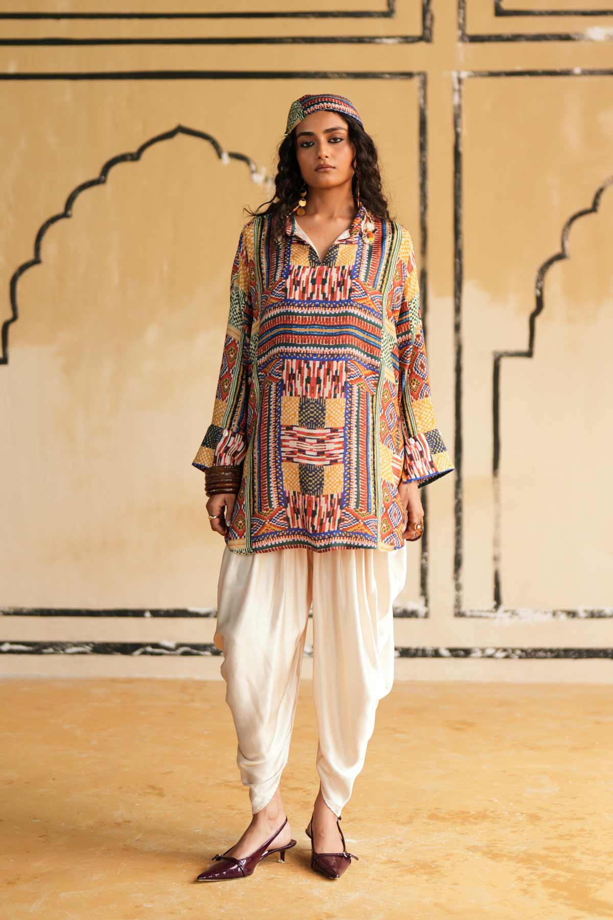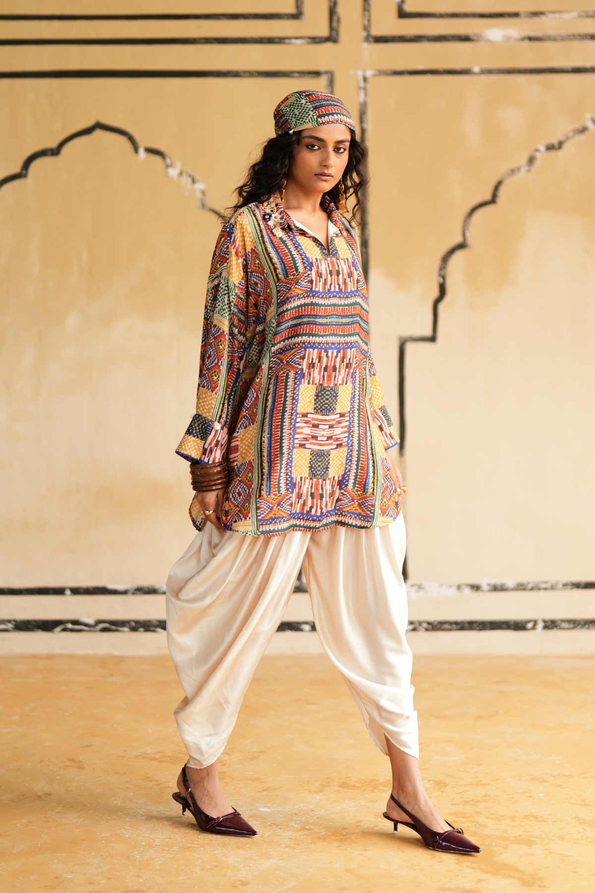 Add this Cotton Silk Printed Top With Satin Dhoti Set to your collection and enjoy effortless elegance with versatile modern charm.