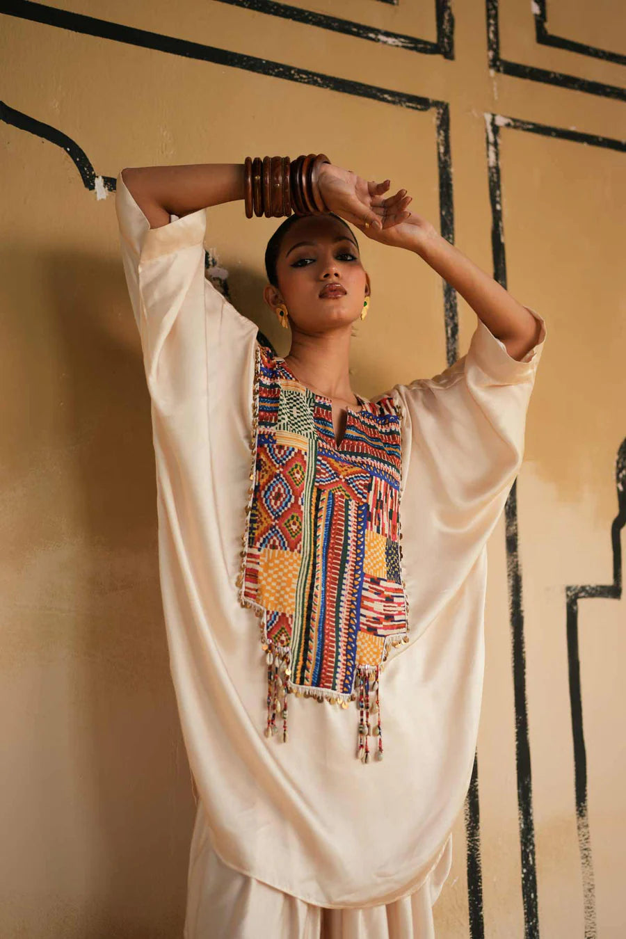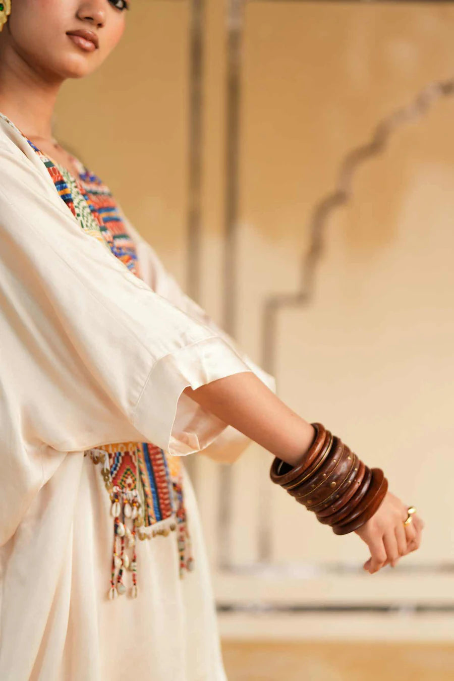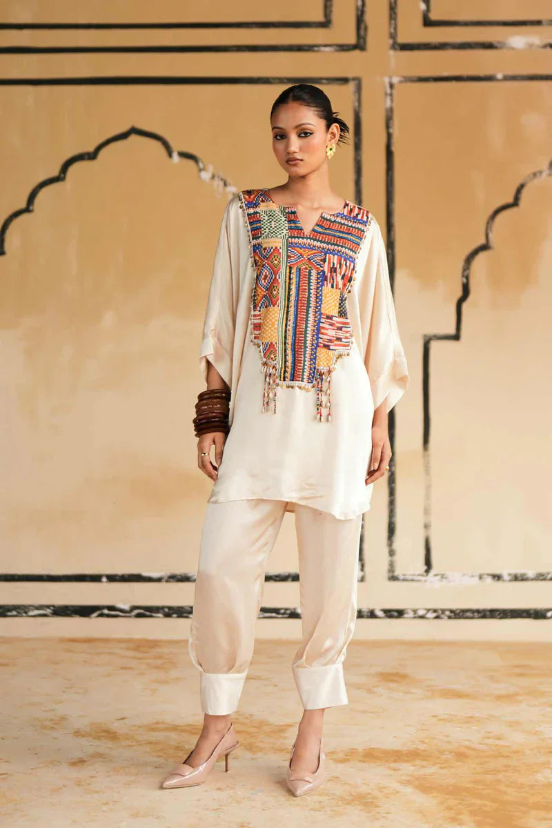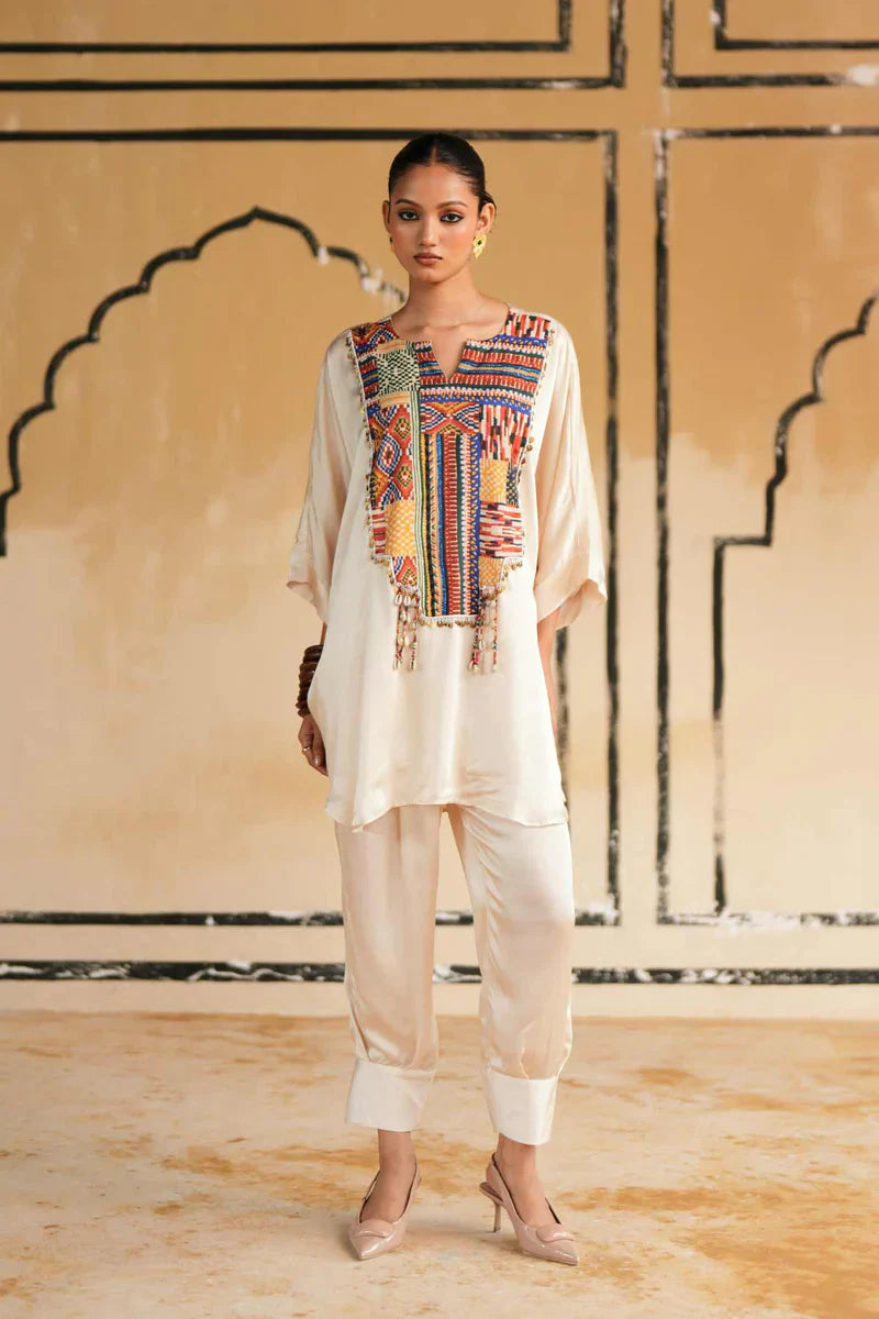 Add this Cream Satin Marusthal Muse Top & Pant/Dhoti Set to your wardrobe for effortless elegance, versatile styling, and all-day luxurious comfort.