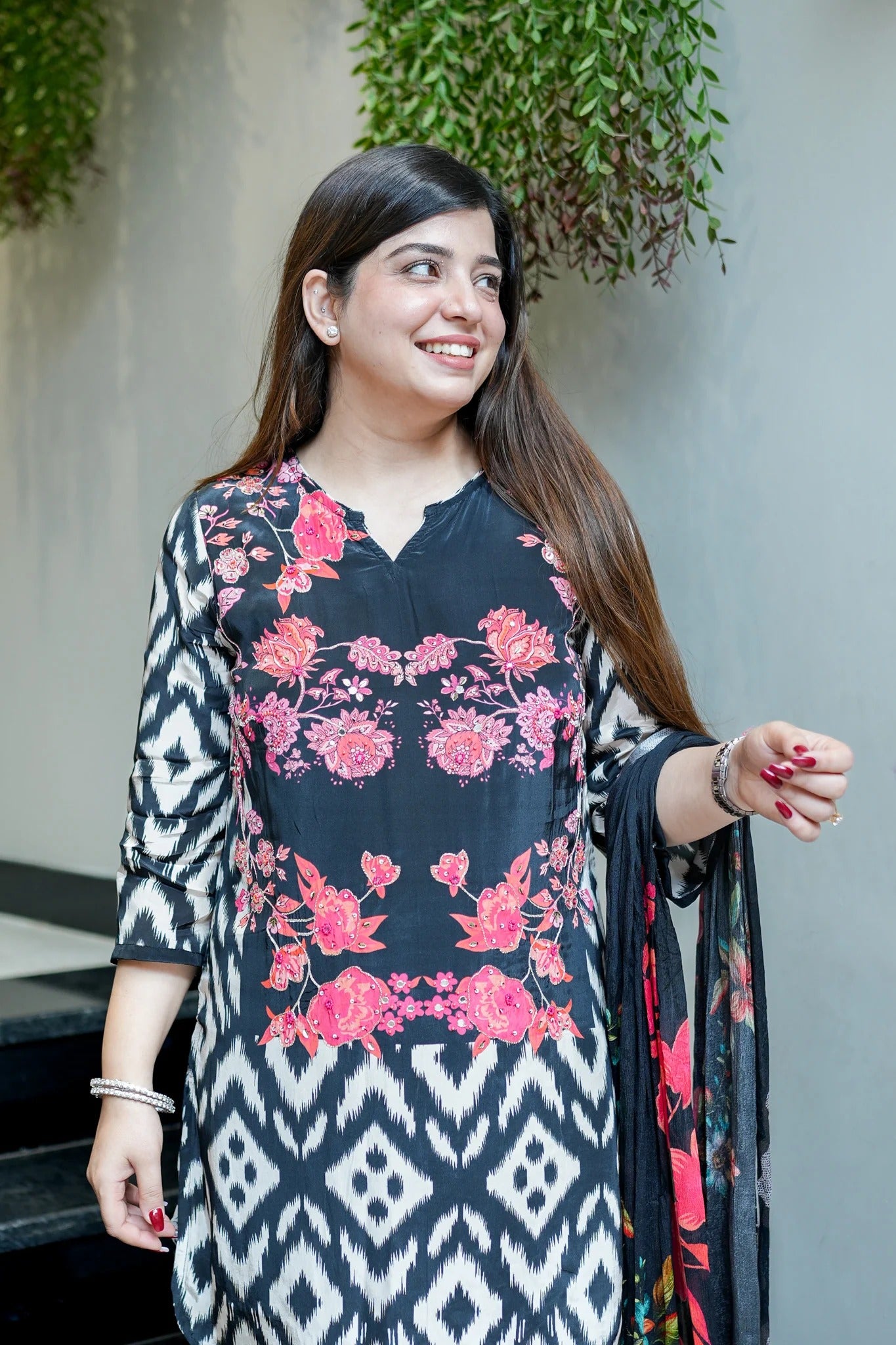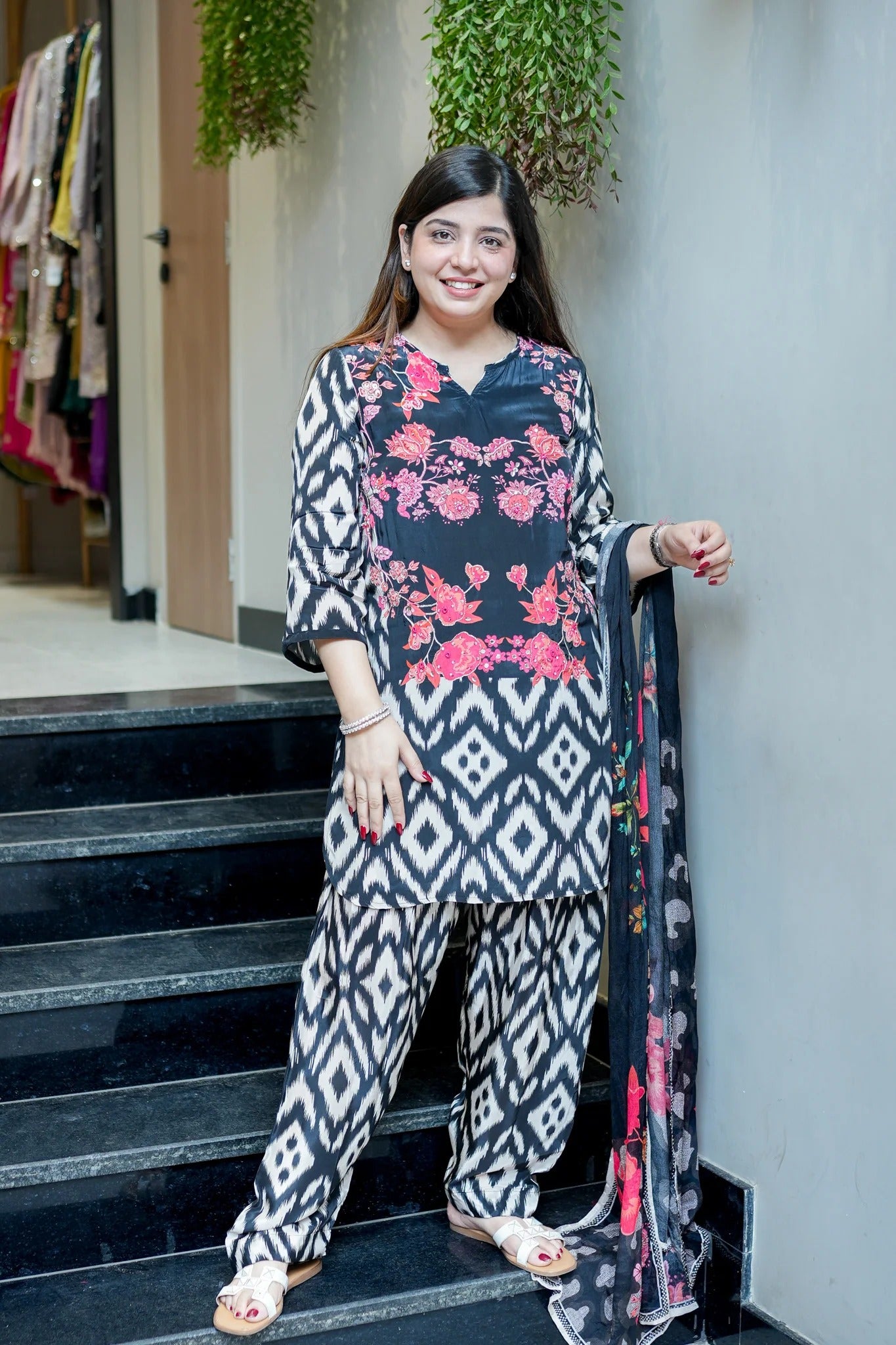 Embrace effortless sophistication with the Vidhita Floral Printed Suit Set, crafted from soft and flowy crepe fabric that feels as graceful as it looks. The beautiful floral print brings a refreshing burst of color and femininity, while the smooth texture ensures lasting comfort. Designed to flatter with a sleek and contemporary silhouette, this suit set transitions seamlessly from festive gatherings to casual get-togethers. Light, breathable, and elegant, it’s the perfect choice for those who love comfort wrapped in timeless beauty.