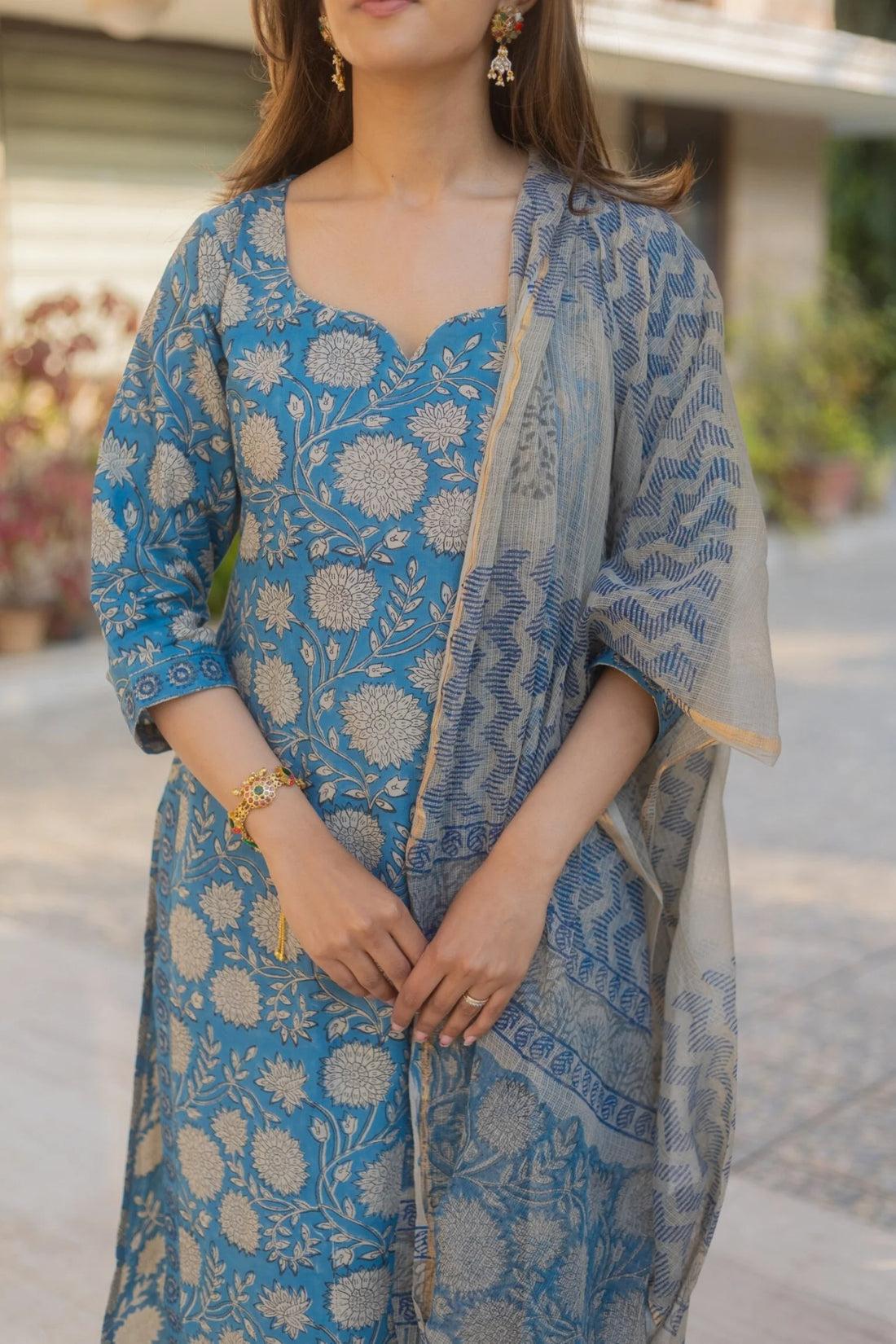 Calm, graceful, and timeless, the Dazzle Blue Straight Suit Set by Reet Lifestyle is designed for women who prefer effortless elegance in everyday dressing. The soothing blue shade paired with delicate handblock floral motifs creates a refined ethnic look that never feels overdone.