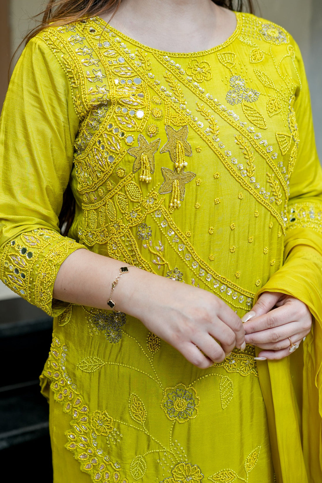 Fabric and style of Yellow Crepe Elegant Co-Ord Set