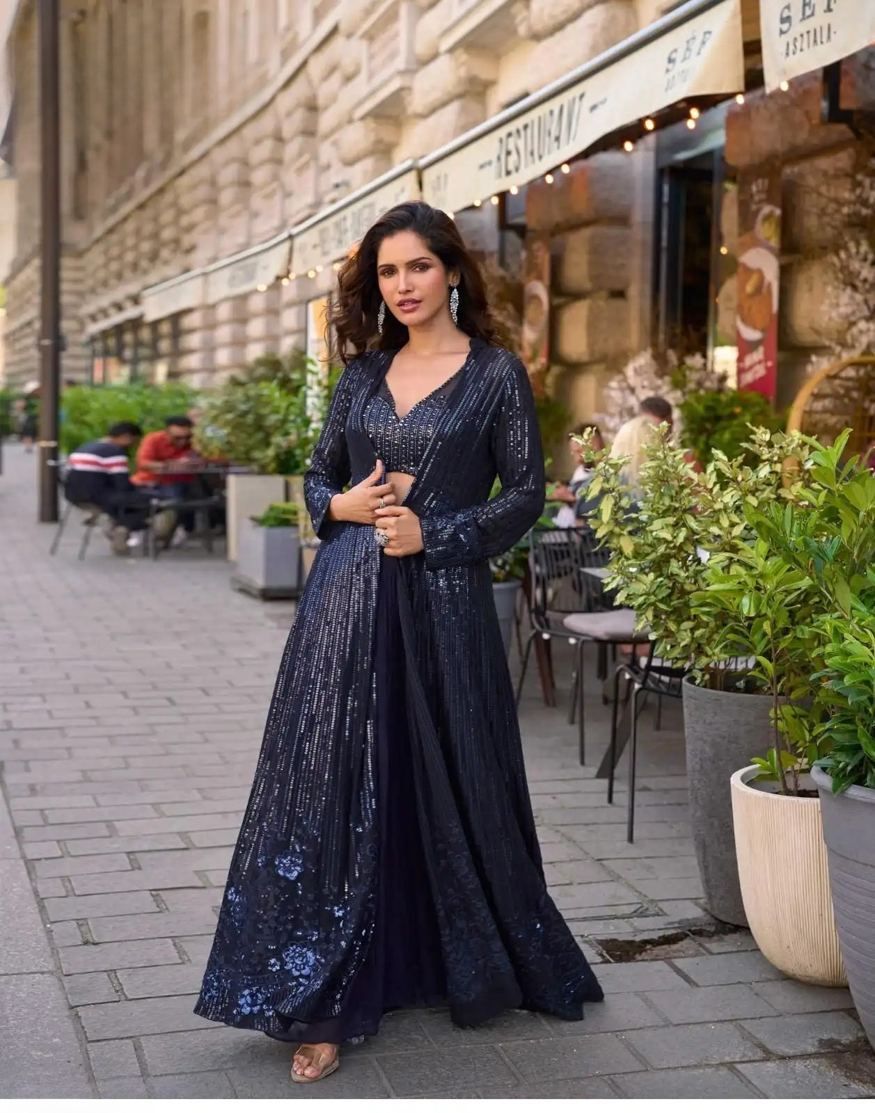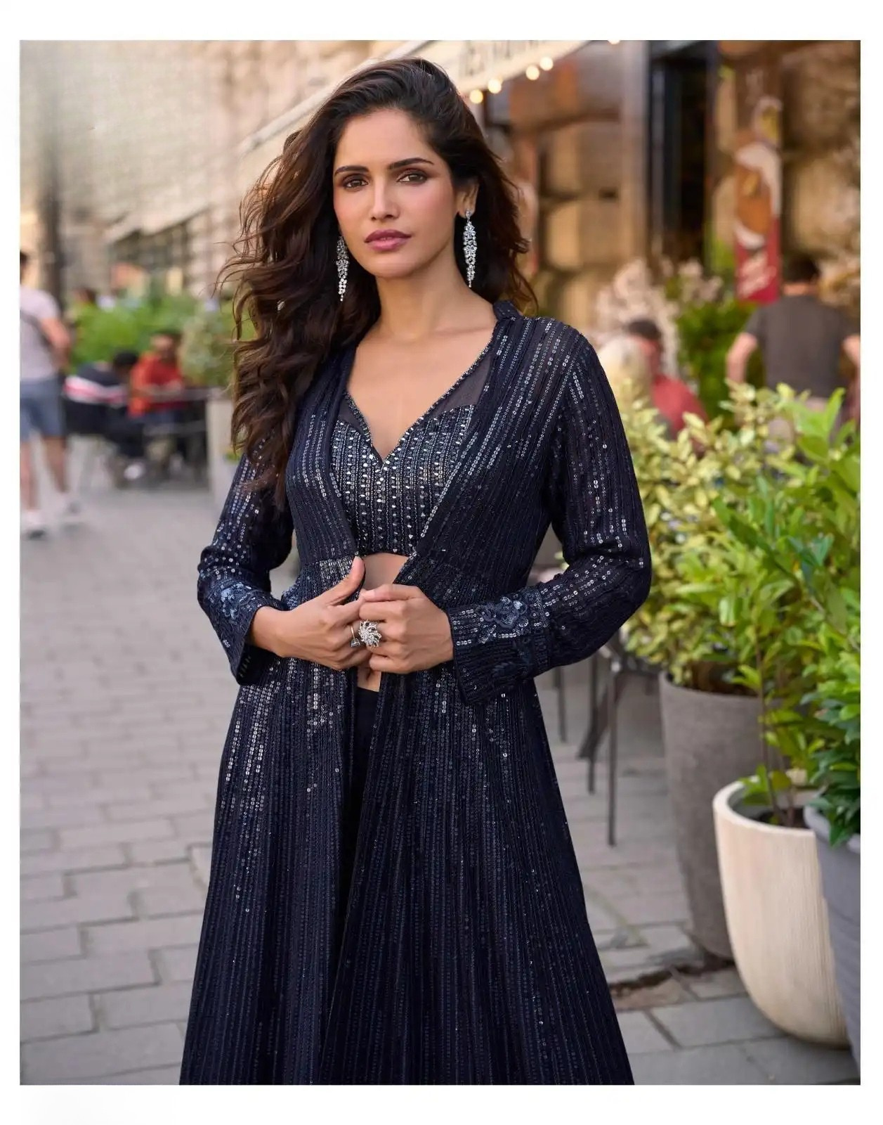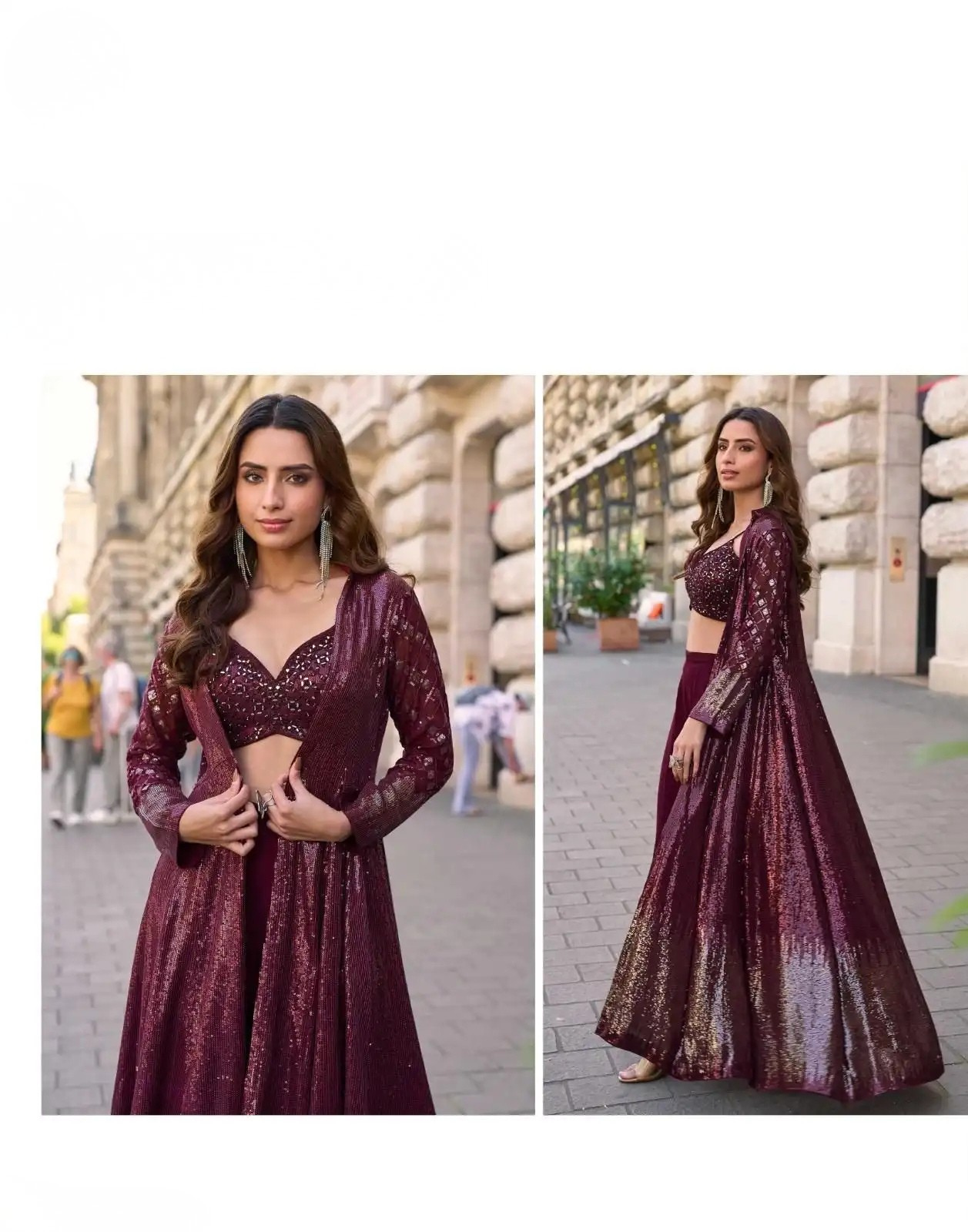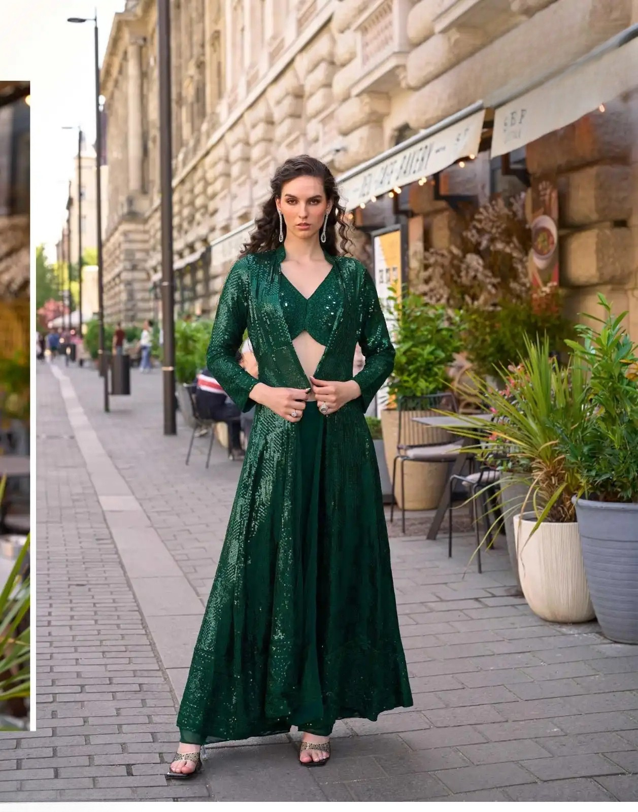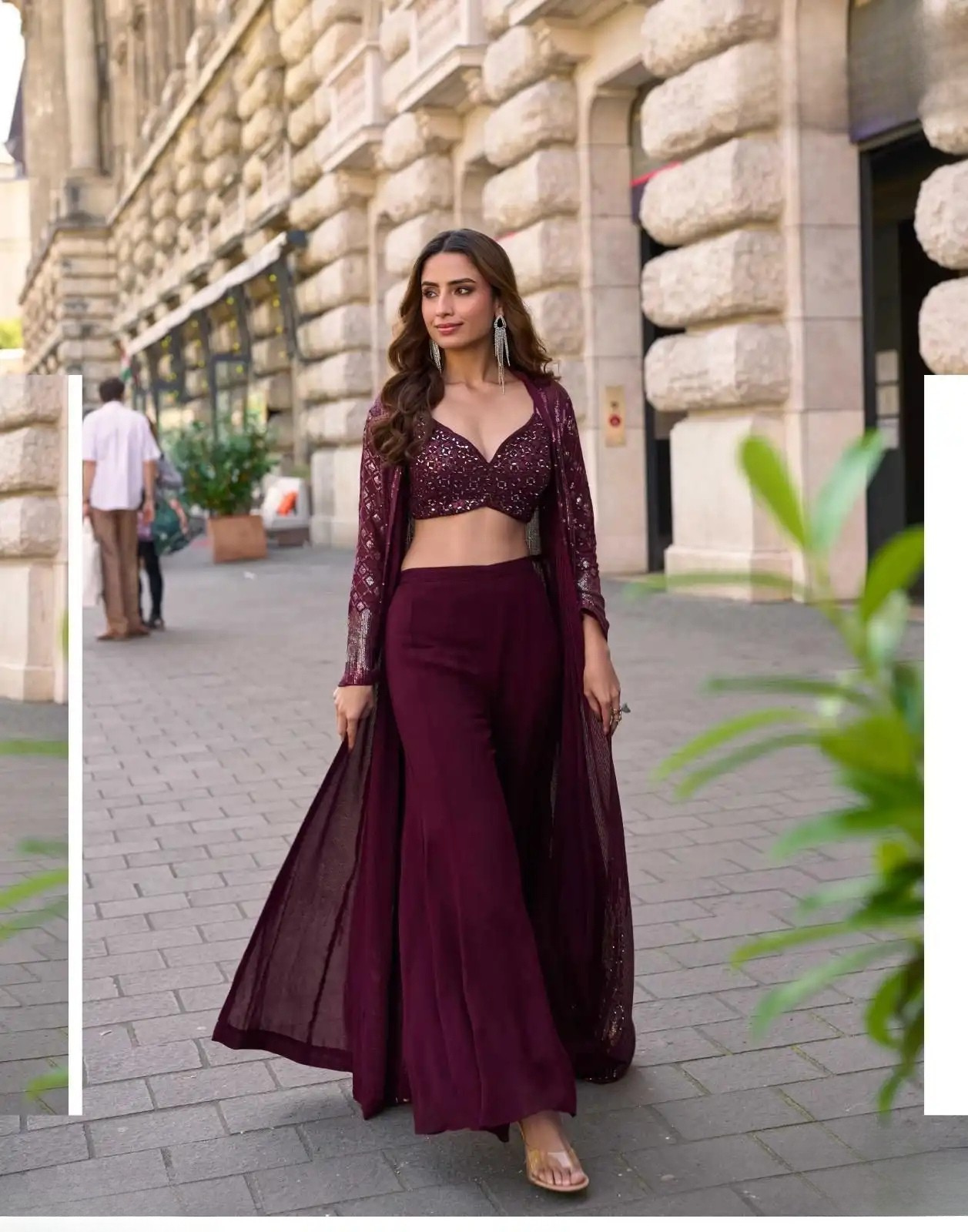 A perfect blend of modern elegance and traditional grandeur, this jacket suit set elevates your festive wardrobe instantly.