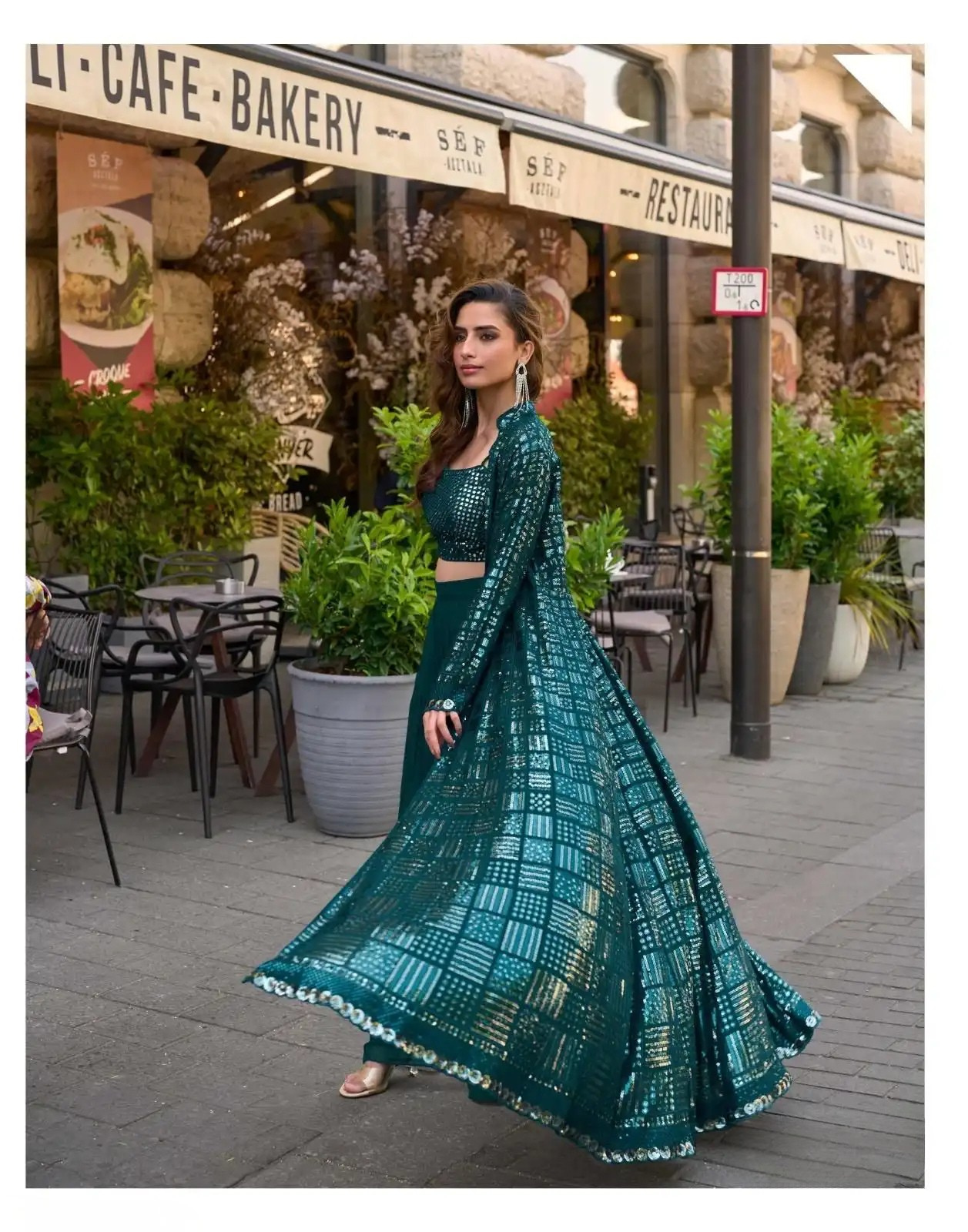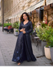 This Georgette Embroidered Jacket Suit Set offers a luxurious, regal look with its fully embroidered floor-length jacket. Crafted from real premium georgette, it comes complete with an embroidered blouse, matching palazzo pants, and coordinated components all in a free size stitched design for effortless elegance and comfort.