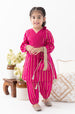 This girl's kurti and salwar set is perfect for traditional events. It's lightweight, breathable, and thoughtfully designed to suit both indoor and outdoor wear. The bright pink hue lifts the mood and photographs beautifully, making it ideal for pictures and memories.