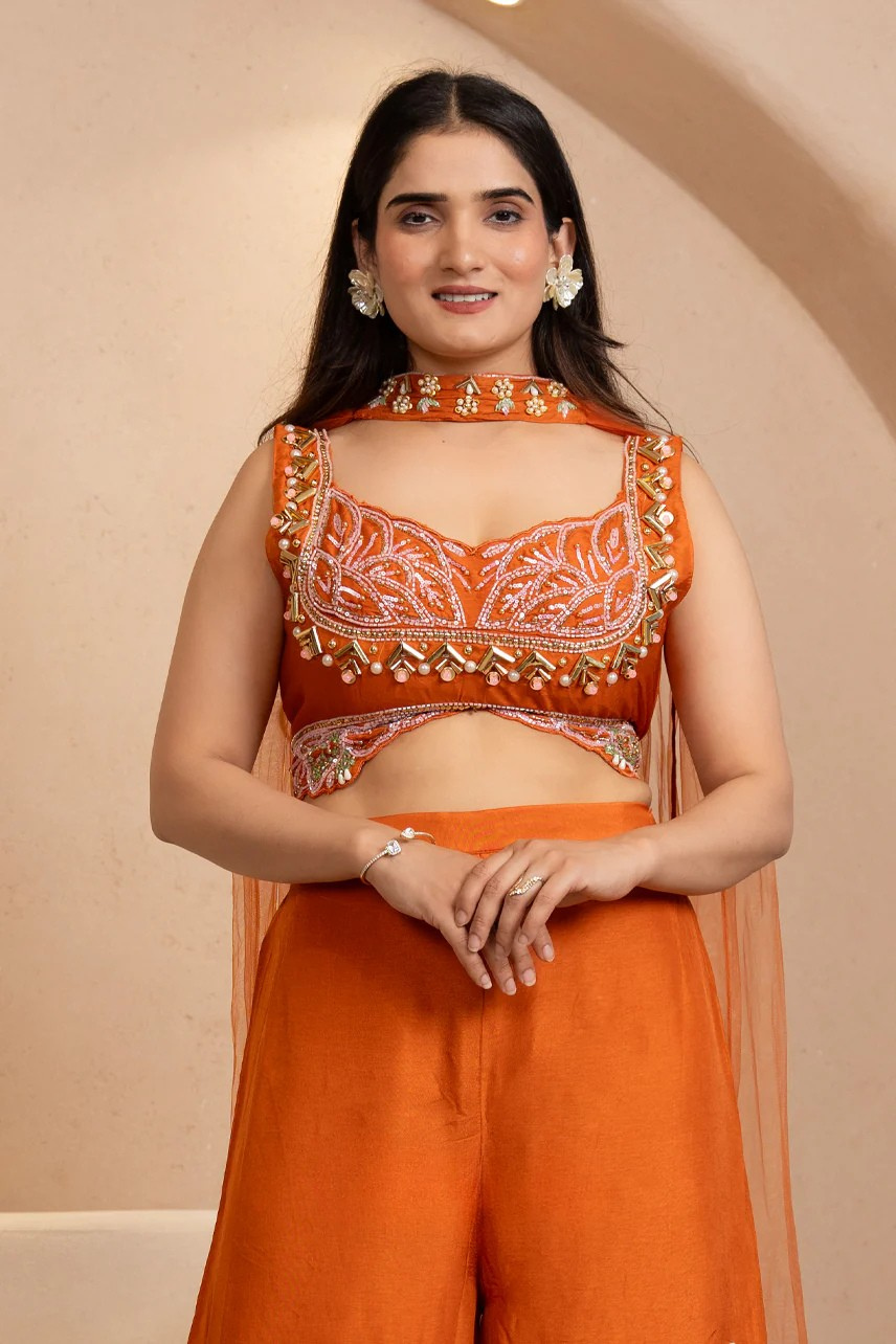 Make a statement of refined grace with the Green Steal the Spotlight Dola Silk Palazzo Set, crafted for those who love timeless style with a modern twist. The rich dola silk fabric lends a luxurious sheen, while the elegant green tone enhances its festive charm. Designed for sophistication and comfort, this ensemble is perfect for weddings, Rakhi celebrations, and special occasions.