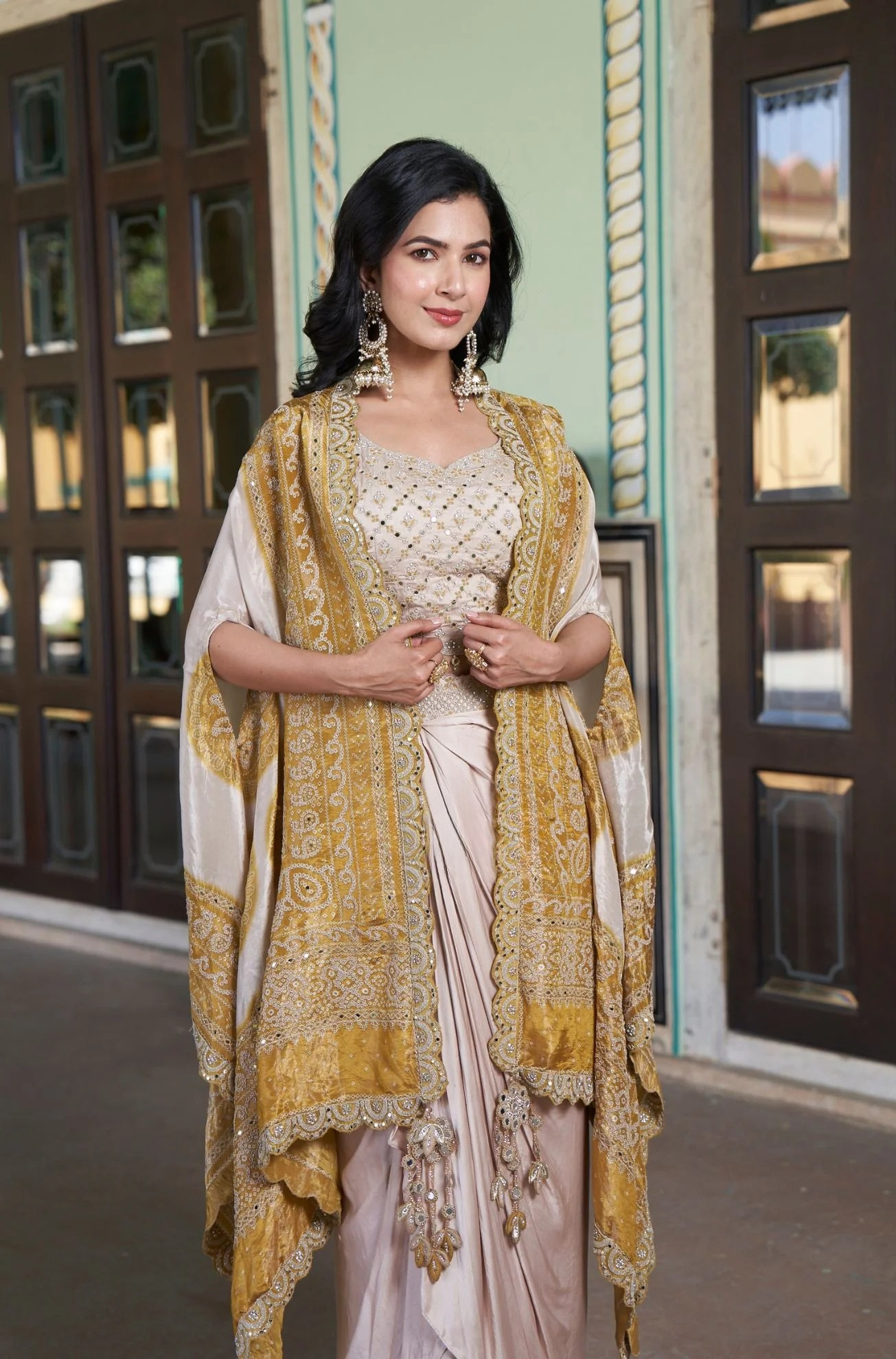 This Green Viscose Embroidered Crop Top Skirt set blends festive charm with contemporary sophistication. Crafted from soft viscose, it features intricate embroidery and shimmering stone work that add richness and visual depth. The vibrant green paired with subtle mustard accents enhances its appeal, making it perfect for festive events, parties, and semi-formal gatherings. Designed for comfort and style, this coordinated set offers a flattering silhouette that moves effortlessly with you.