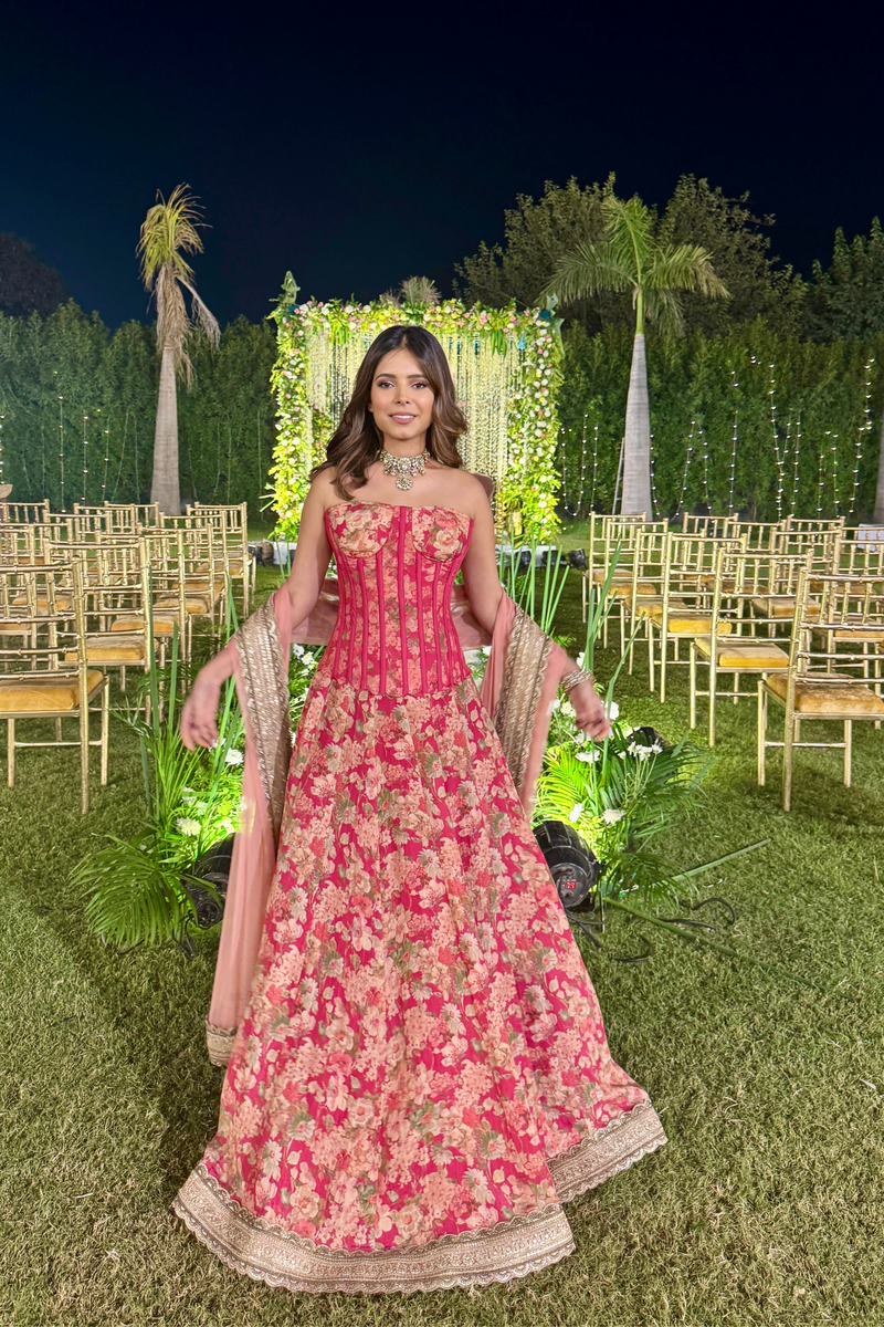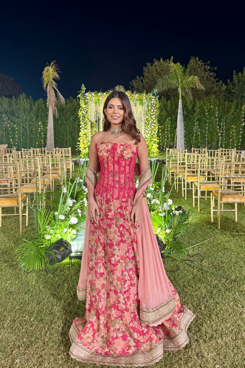 Scarlett Bronze Corset Tissue Lehenga Set