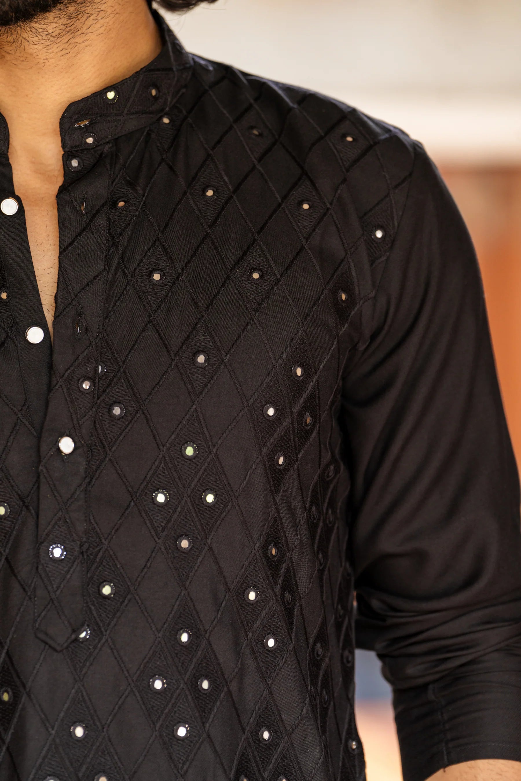 Why You’ll Love It – Jet Black Chikan Mirror Kurta