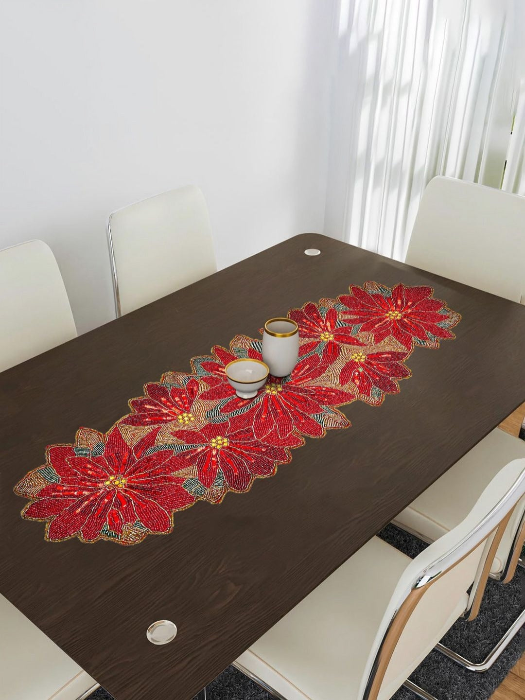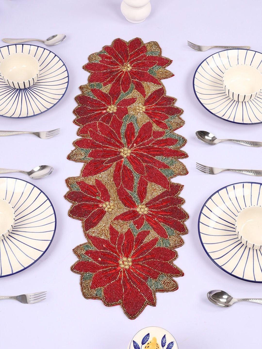 Add the Maroon Brown Beaded Floral Table Runner to your home decor collection and bring elegance, charm, and sophistication to every table setting.