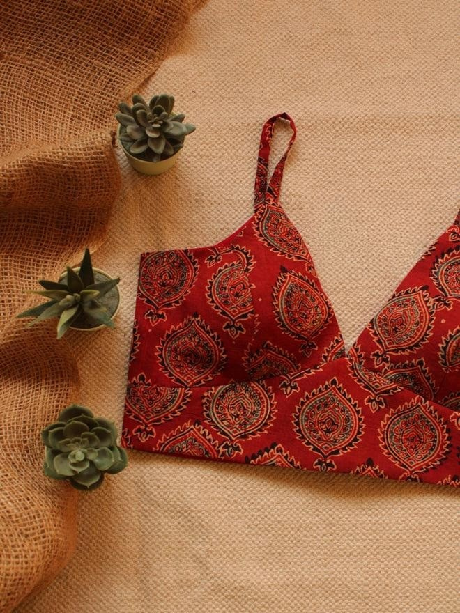 Add this Maroon Cotton Ajrakh Padded Blouse to your wardrobe for timeless ethnic elegance, comfort, and celebration-ready style.