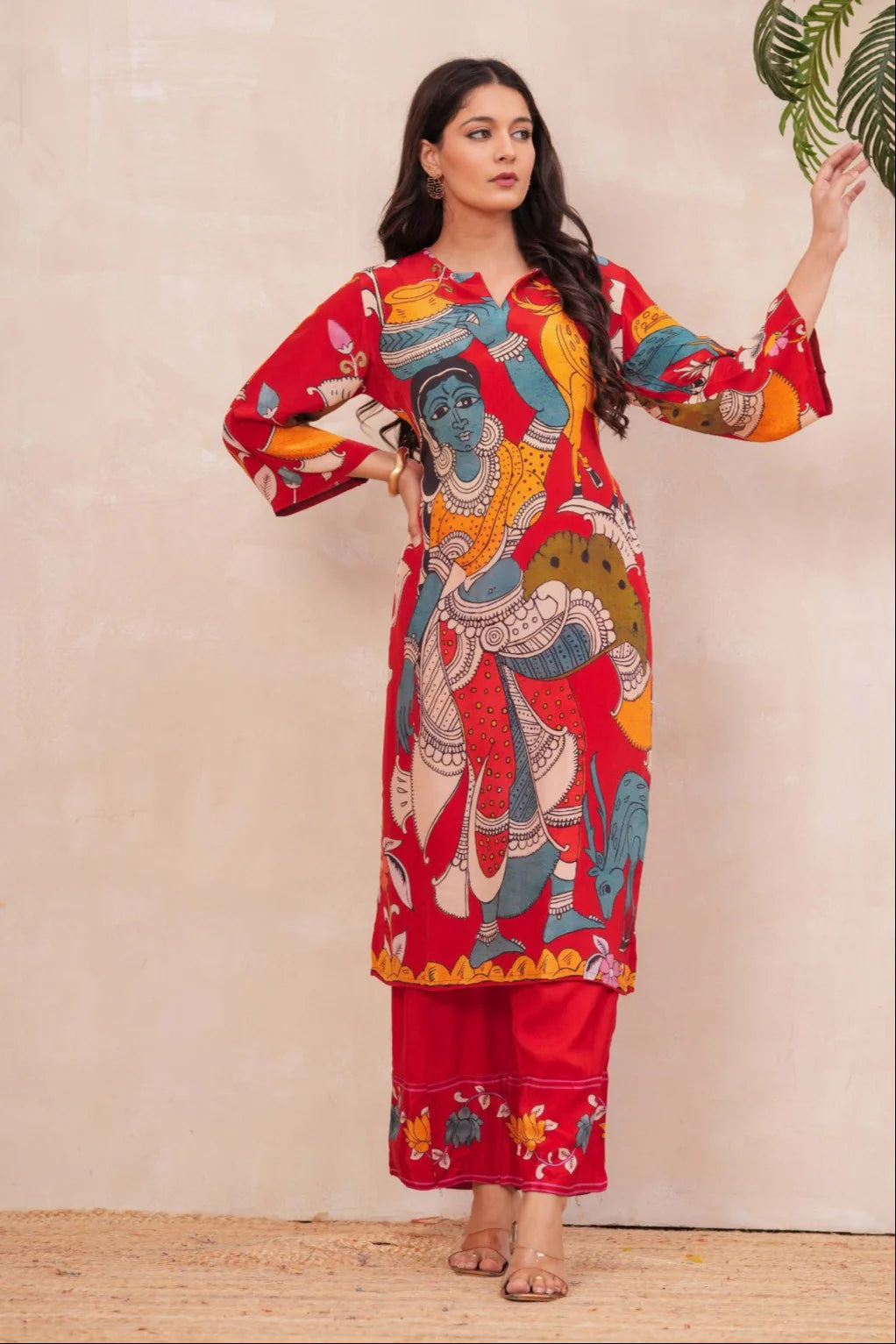 The Odissa Handmade Crepe Printed Kurta Pant Set embodies contemporary elegance with a hint of traditional artistry. Crafted from premium crepe, this ensemble offers a soft, smooth drape that flatters every silhouette. The kurta features a vibrant cadmium-inspired print that adds depth and sophistication, paired with coordinating pants for a polished and graceful look. Lightweight and comfortable, this handcrafted set is perfect for festive gatherings, daytime events, or casual celebrations.