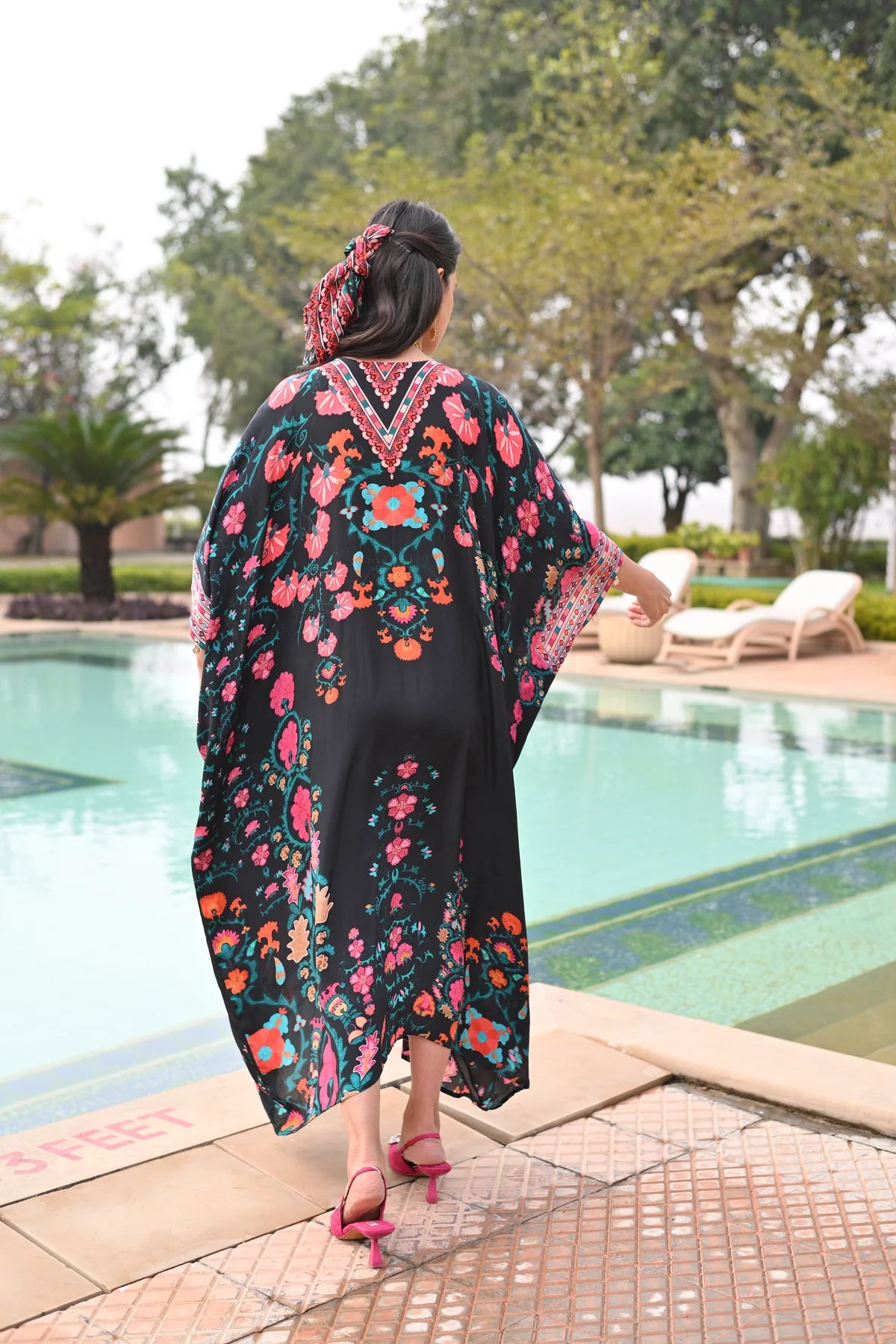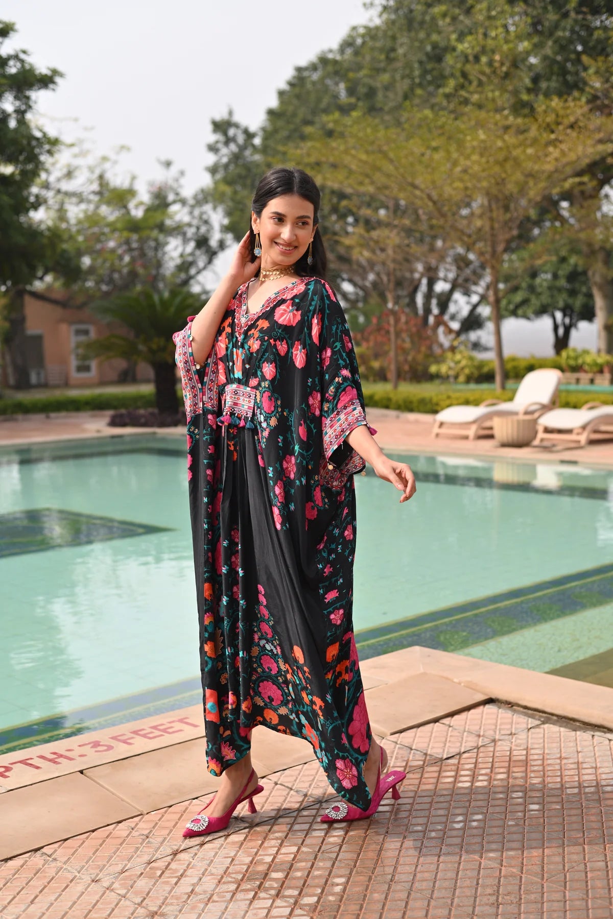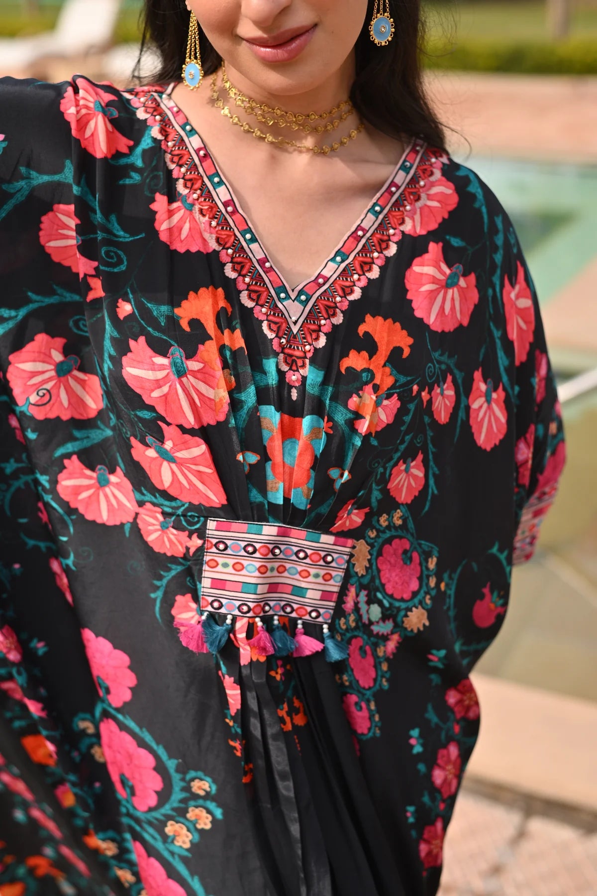 Add the Midnight Sable Black Panel Kaftan to your collection and experience the harmony of effortless sophistication, modern design, and refined comfort.