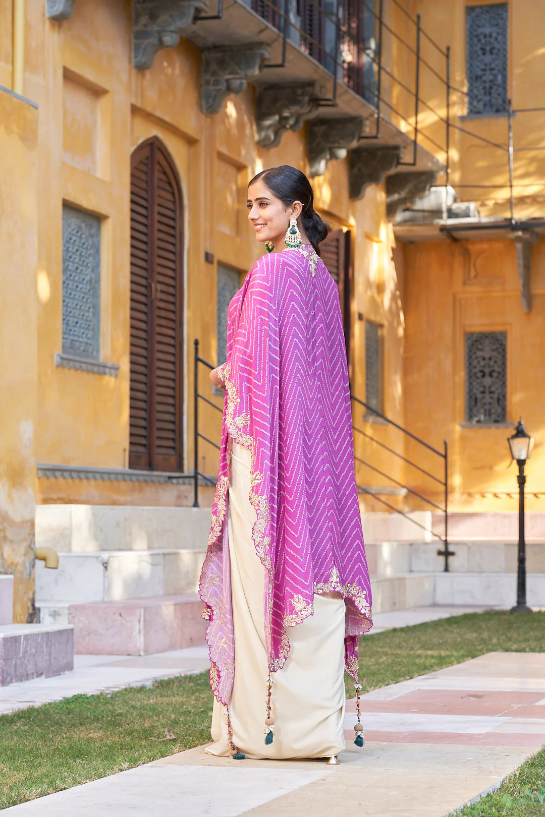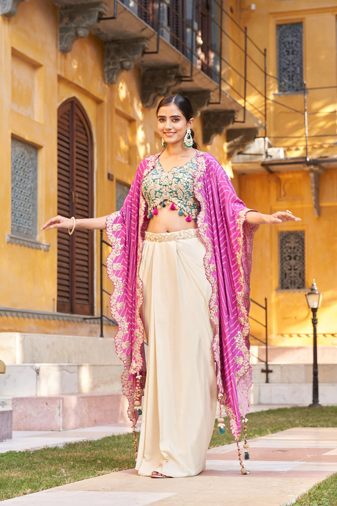 Add this Multi-Colour Viscose Designer Cape Set to your wardrobe and enjoy a blend of festive vibrancy, comfort, and modern elegance in every celebration.