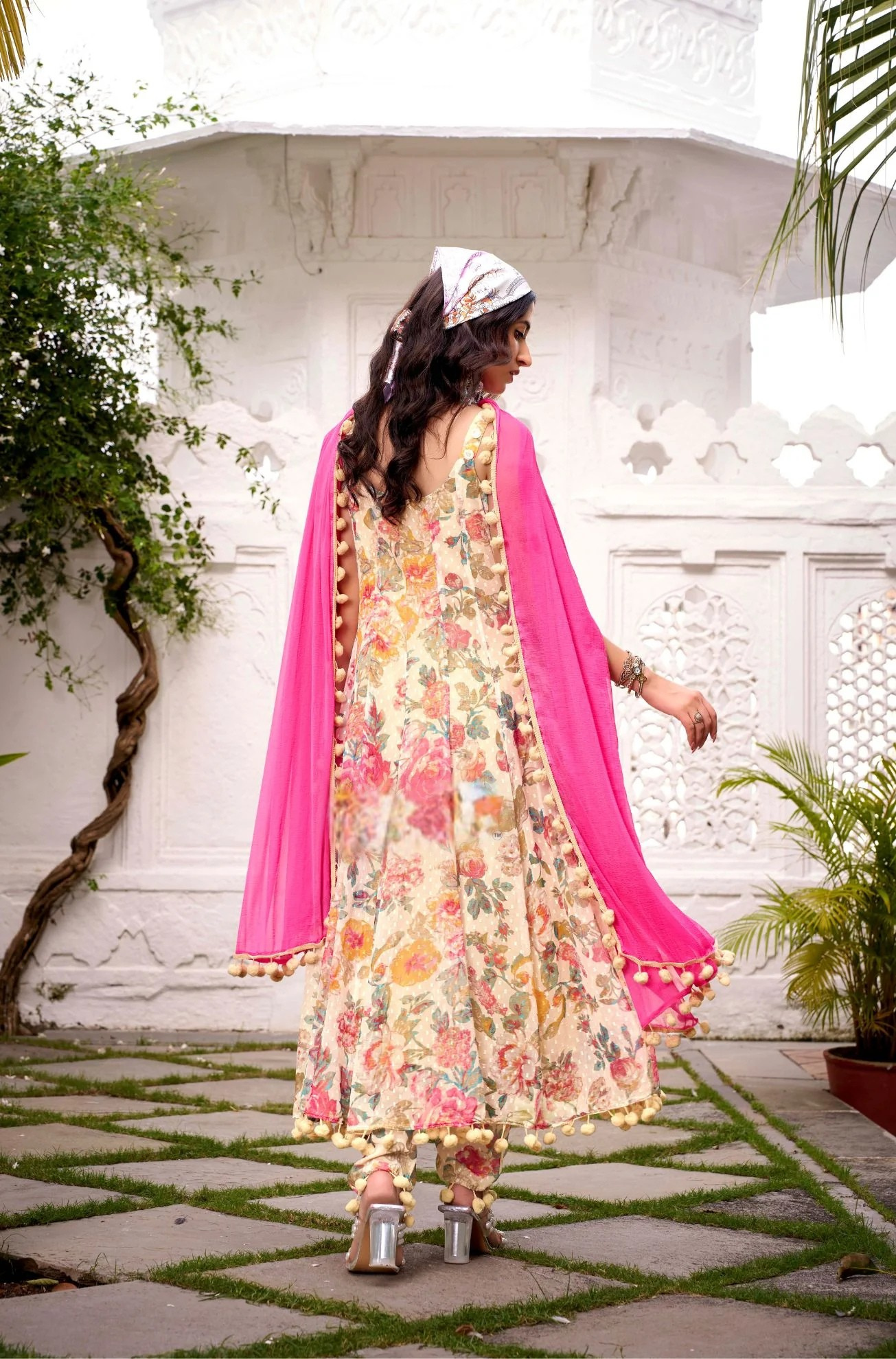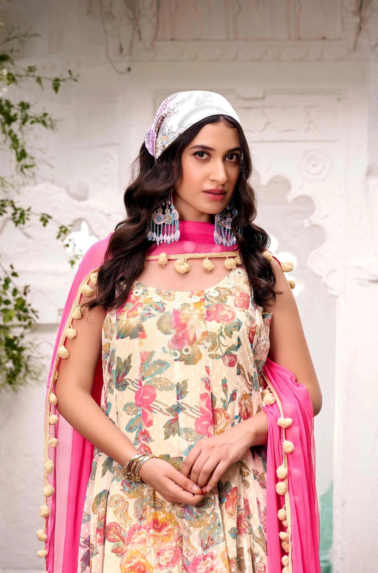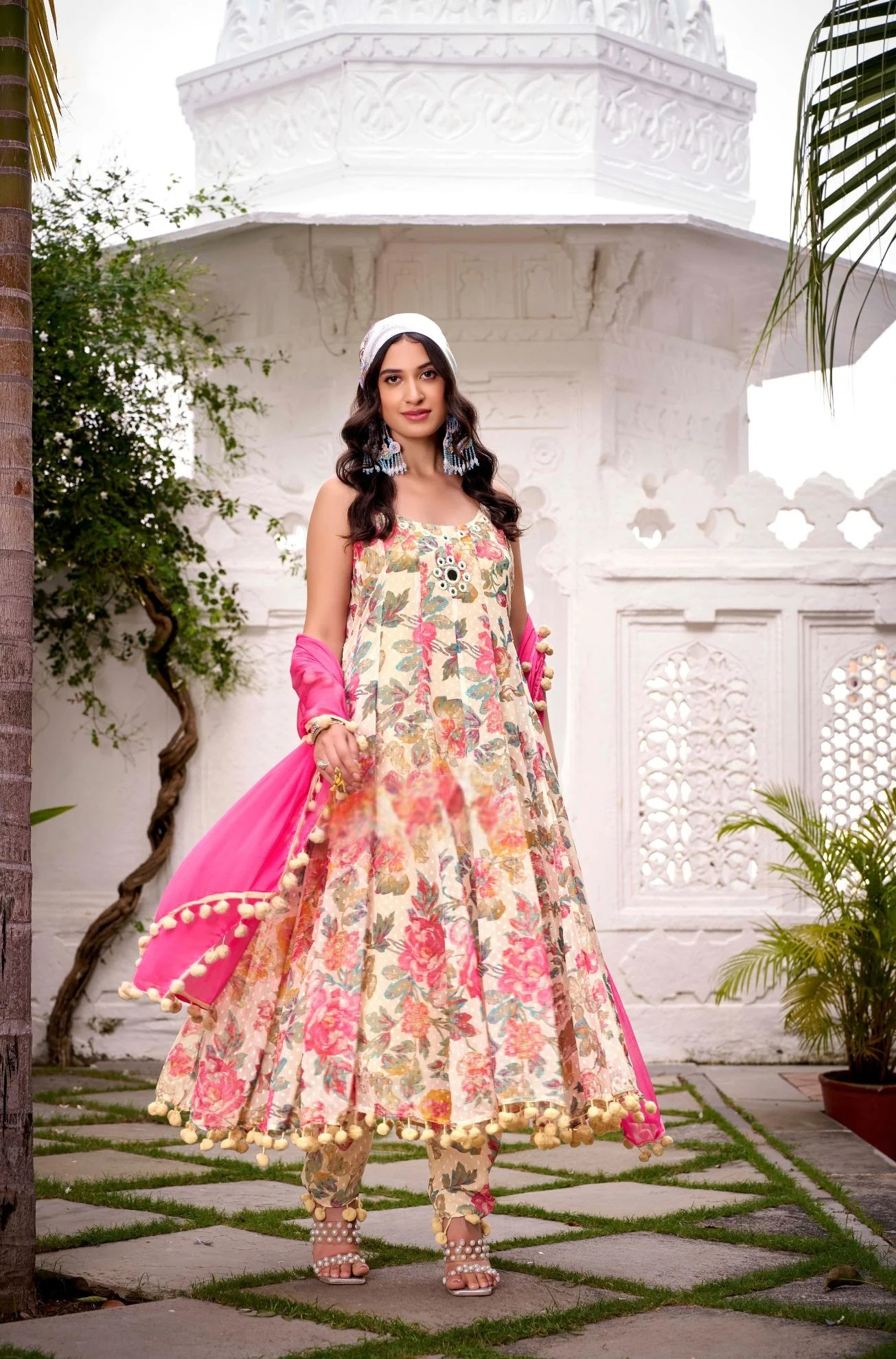 The Multi-Shade Chiffon Printed Anarkali Suit Set is a vibrant and flowy ensemble designed to make every celebration more colorful. Crafted in lightweight chiffon, it features a beautiful blend of hues that create an elegant, eye-catching print. With its graceful fall and festive charm, this Anarkali is perfect for traditional occasions and joyful gatherings.