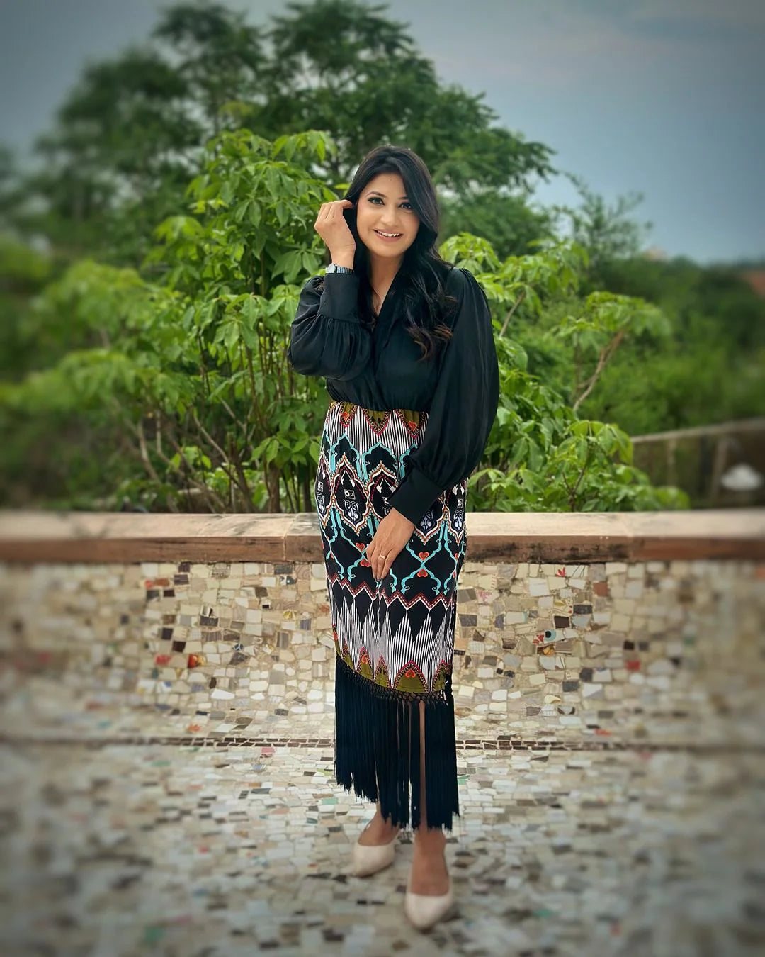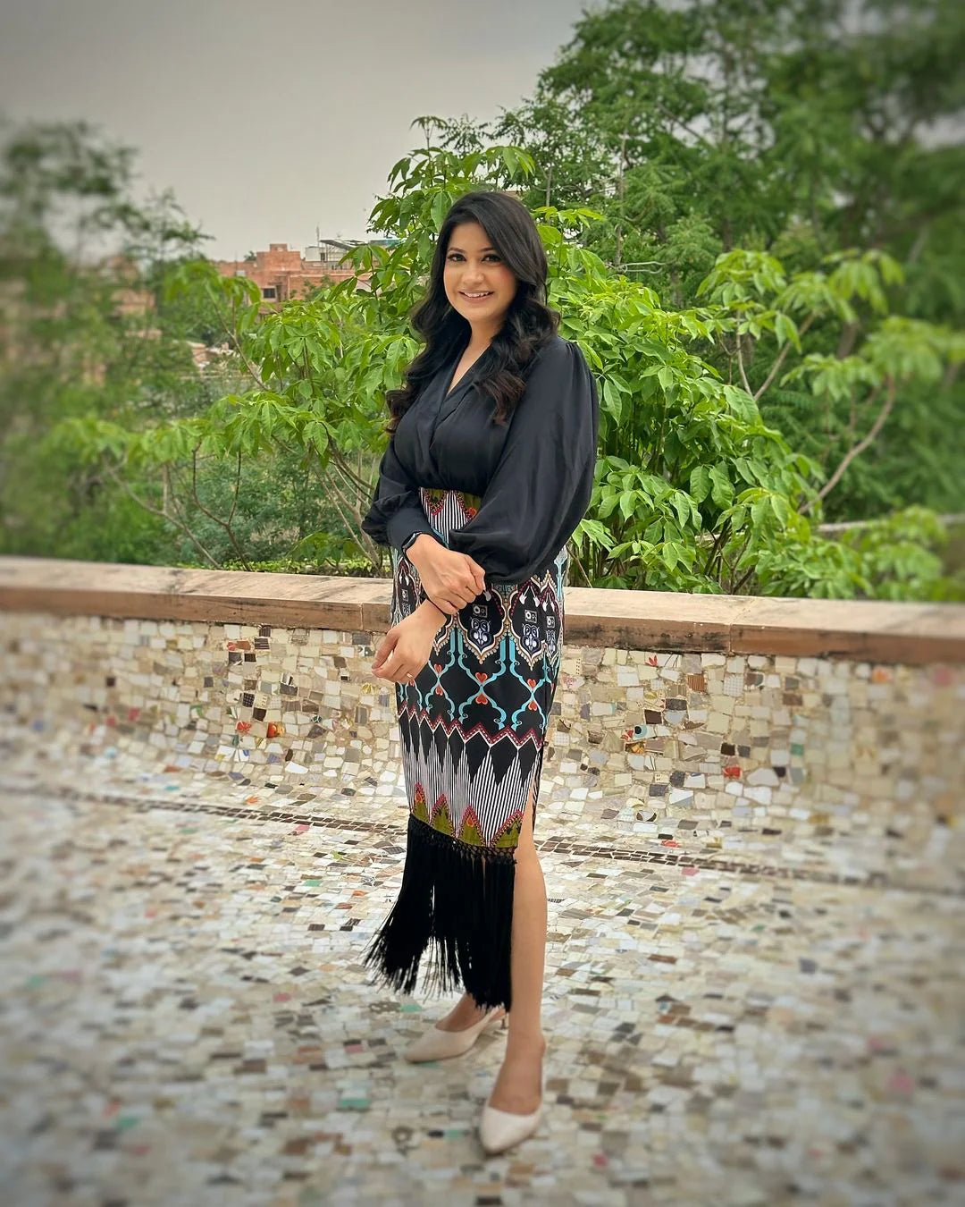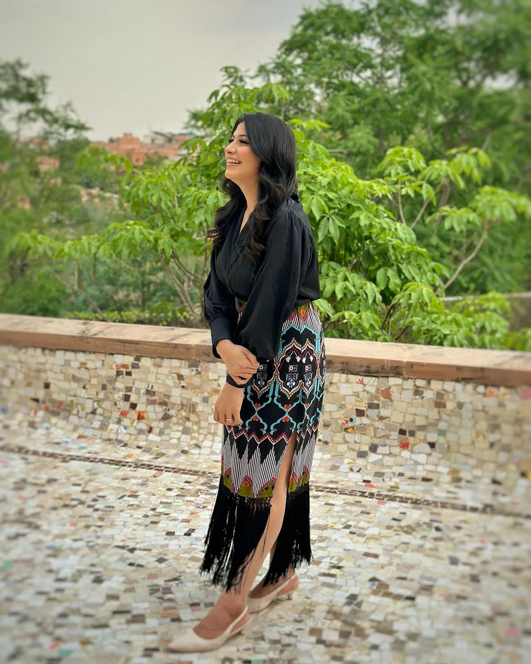Style this dress with minimal jewelry and comfortable footwear for an effortlessly polished look.