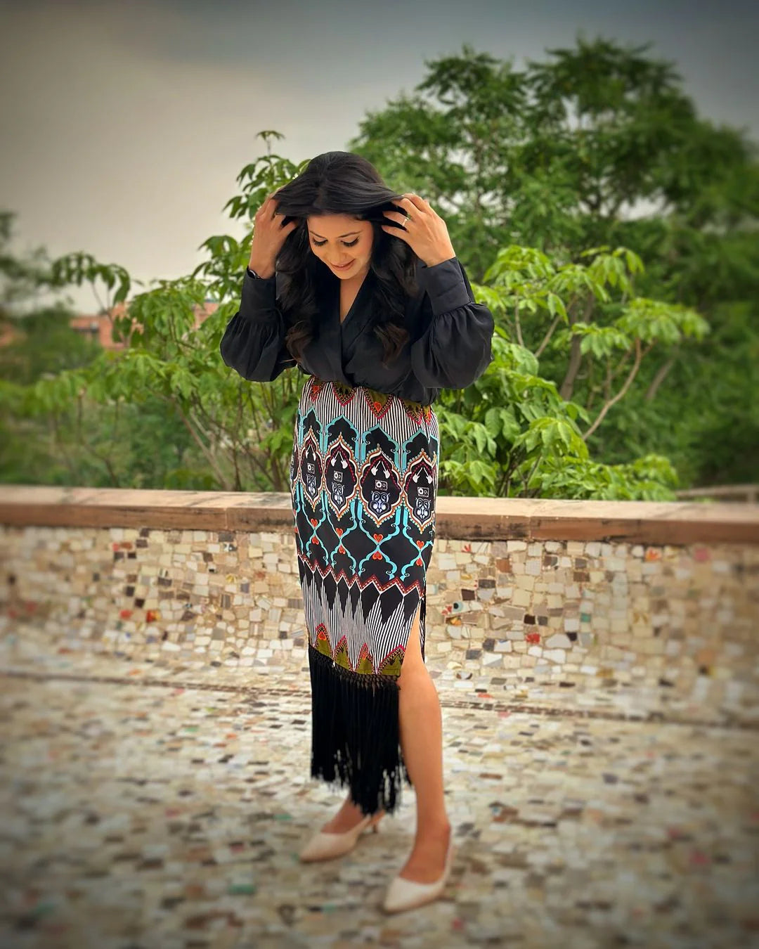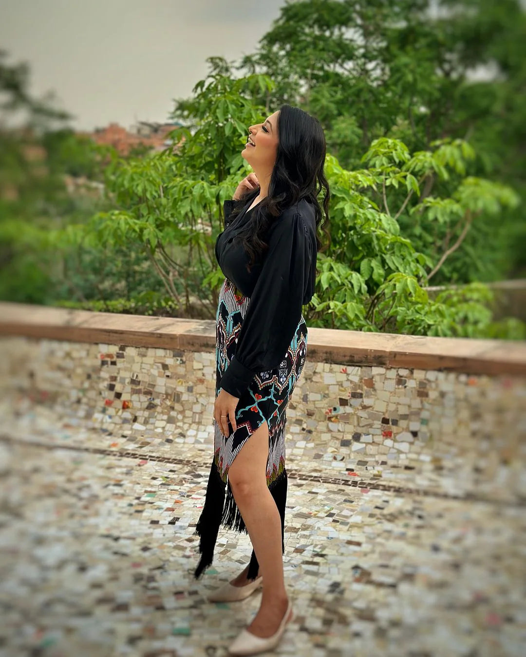This Multicolor Crepe Print Shirt Dress brings together comfort and chic contemporary style. Made from lightweight crepe, it drapes beautifully while offering a smooth, breathable feel. The fitted shape enhances your silhouette, and its eye-catching multicolor motif adds a vibrant, fashionable touch. Perfect for daytime outings, casual events, and weekend styling.
