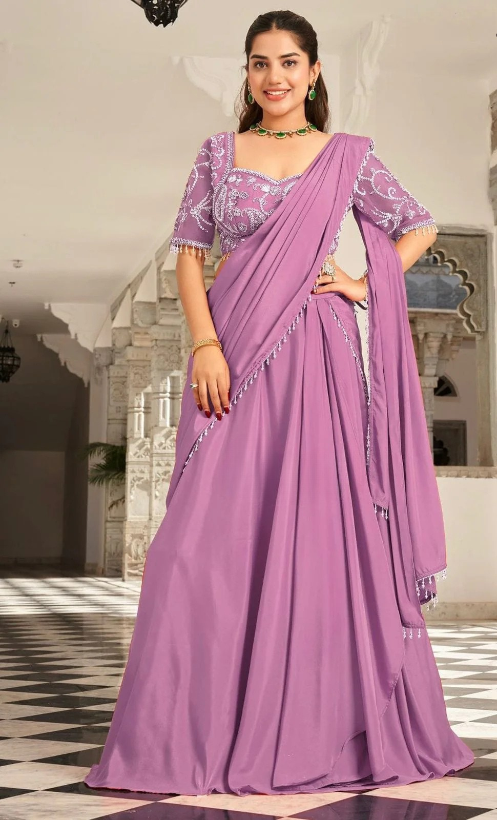 - Type/Style: Pre-Draped Sequin Saree