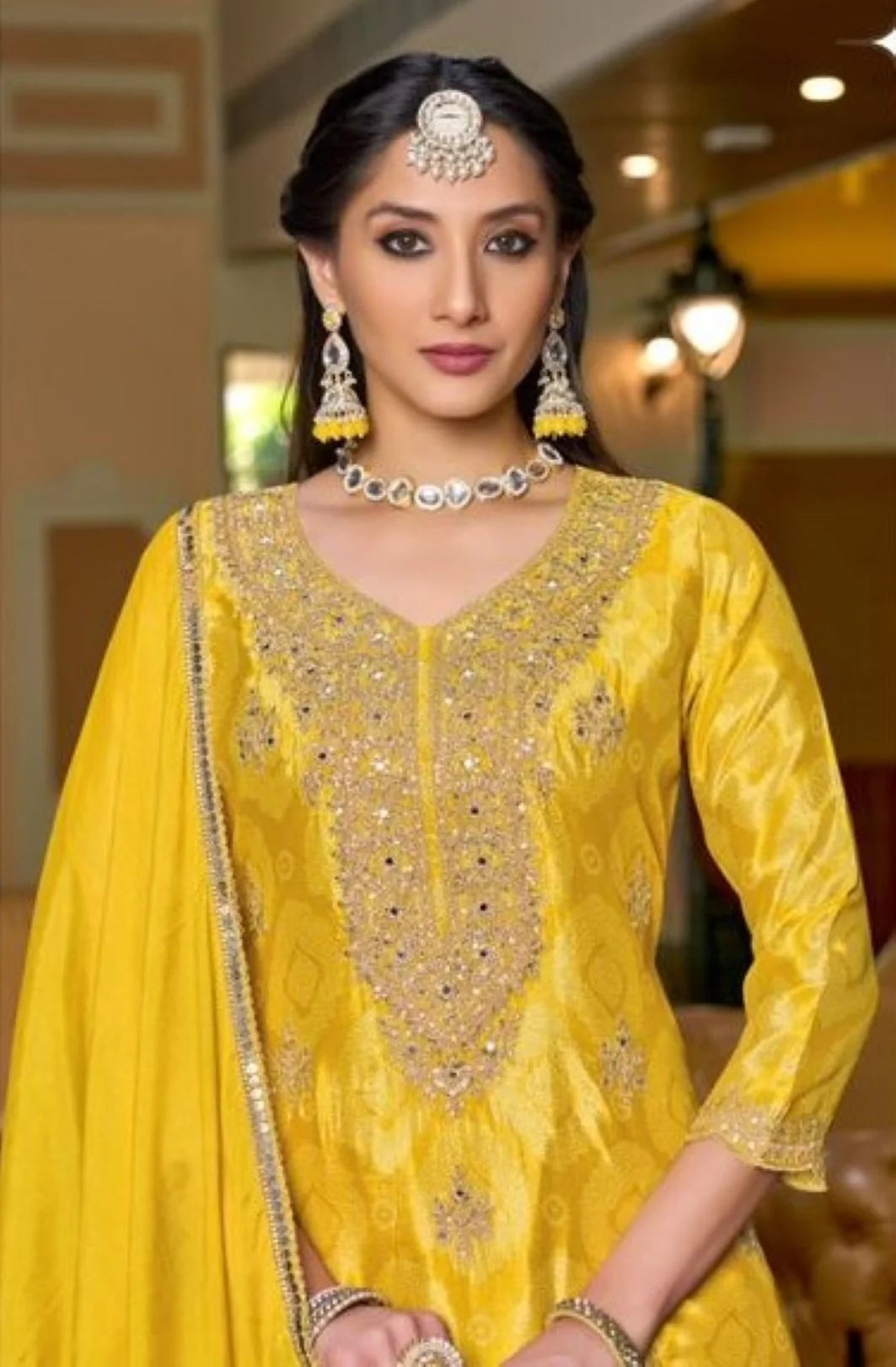 Step into effortless elegance with the Pailan Chinon Embroidered Full Work Suit Set a handcrafted beauty that defines grace and luxury.
