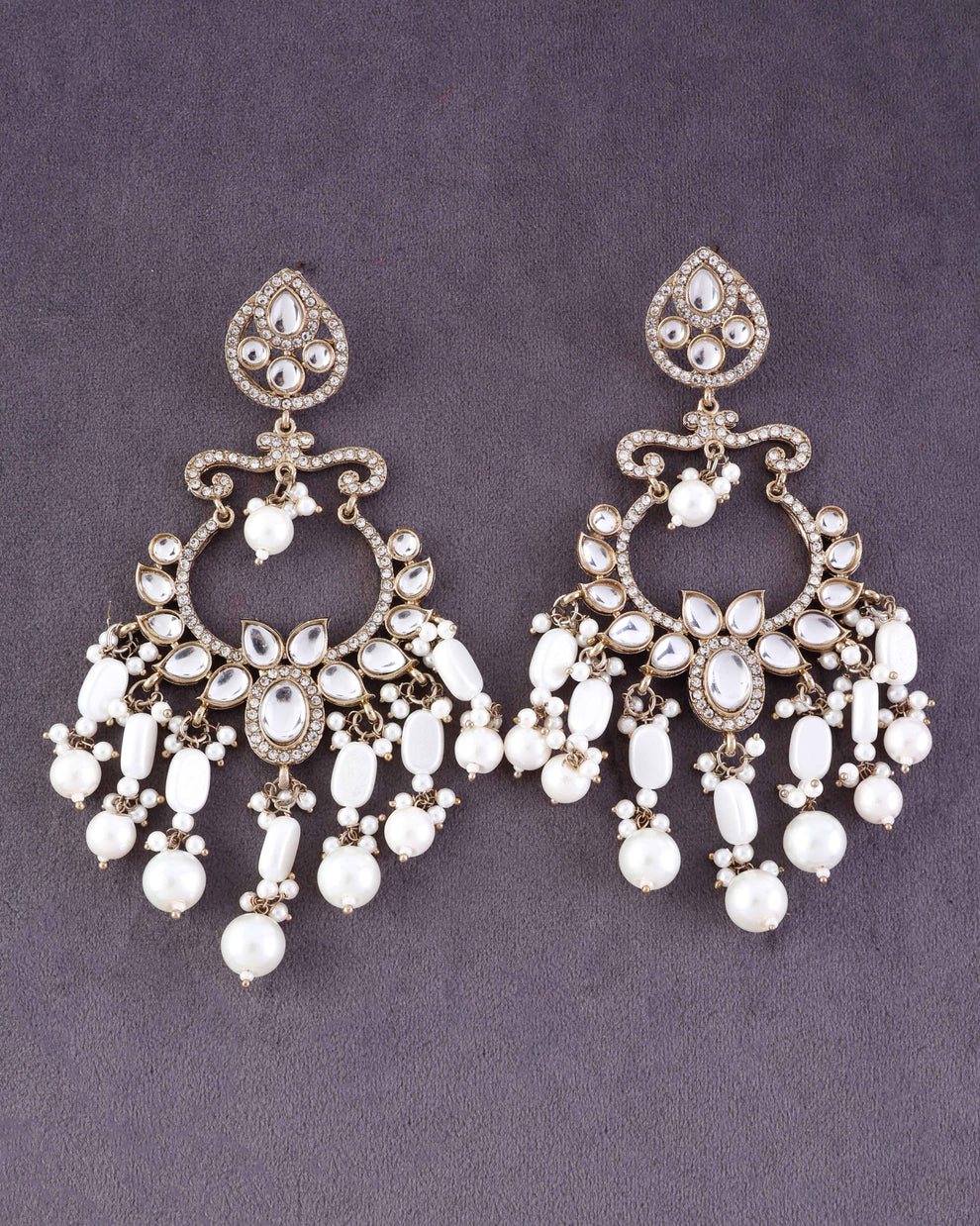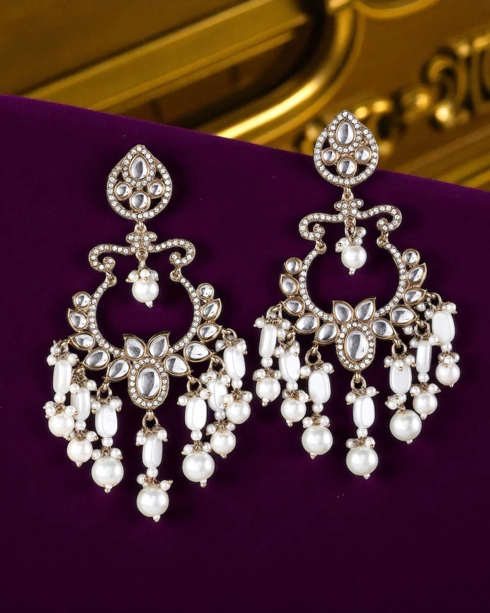 Add these Pearl Rajveer Designer Chandbali Earrings to your collection for a stunning accessory that brings elegance, grace, and festive charm to every ensemble.