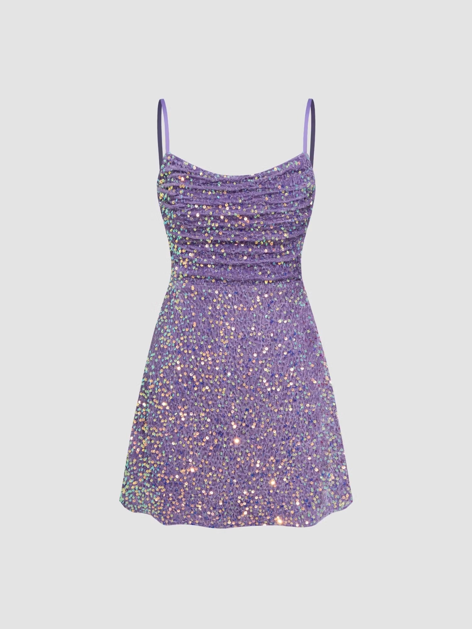 Add this Sequin Cut-Out Ruched Mini Dress to your collection and step into every casual or festive occasion with sparkling confidence and contemporary style.
