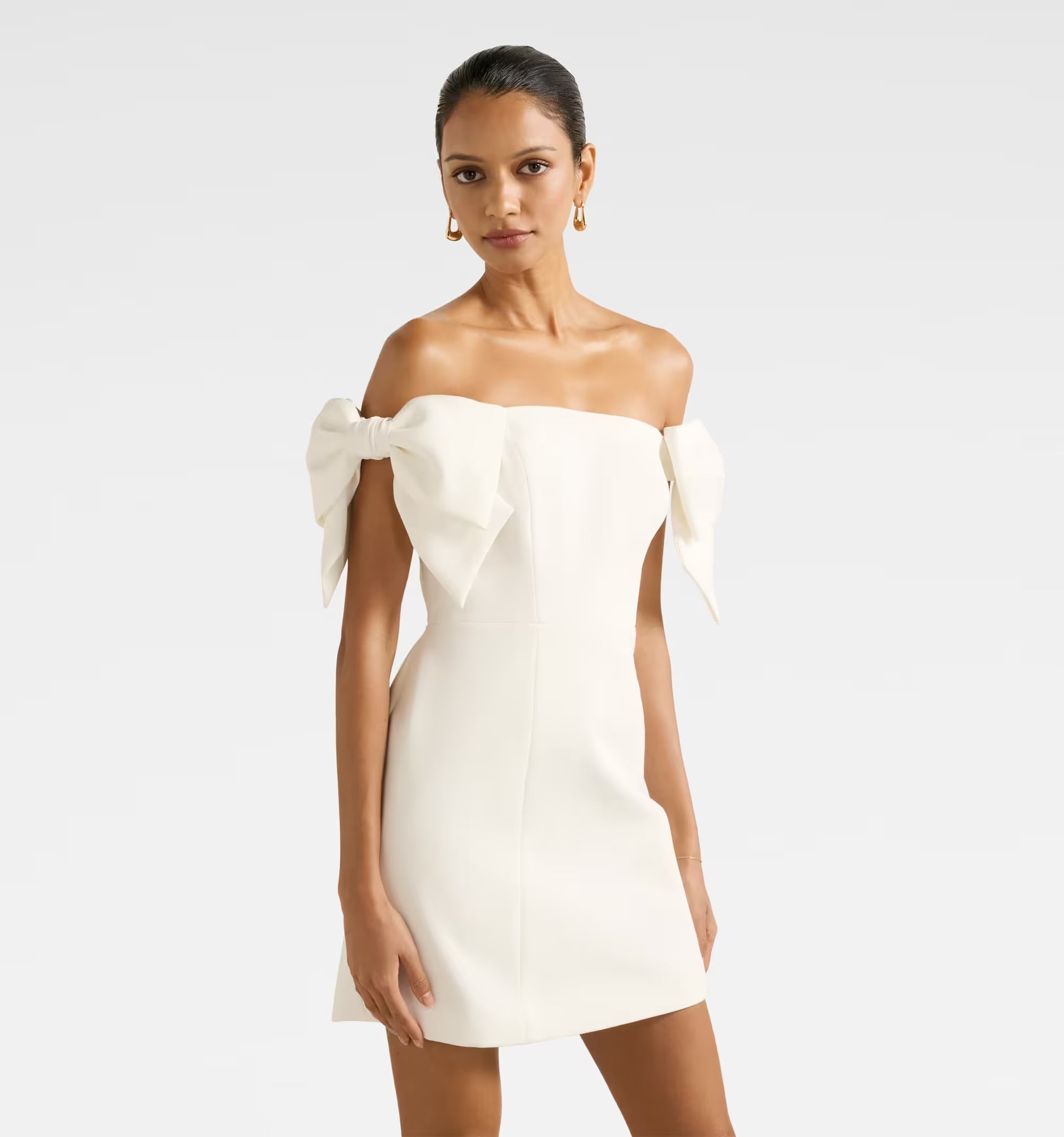 Add this Porcelain Petite Mini Bow Dress to your wardrobe and embrace effortless femininity with every wear.