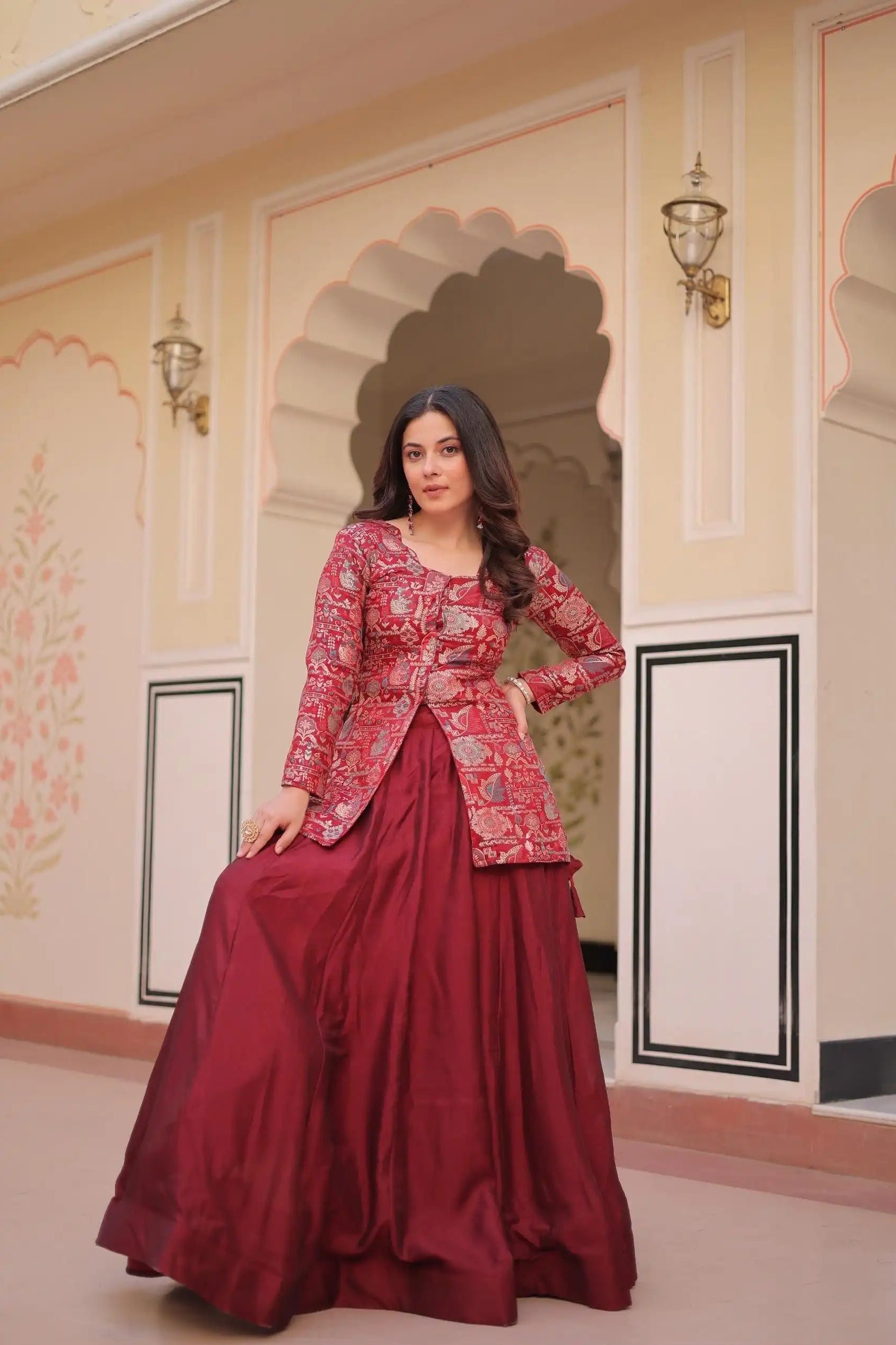 Step into festive grandeur with this Pure Shimmer Embroidered Fancy Lehenga Choli, crafted to offer a perfect balance of luxury, comfort, and timeless charm. The beautifully flared lehenga made from Pure Shimmer Vichitra fabric exudes a radiant glow, while the fully stitched blouse with jacquard detailing adds richness to the overall look. Designed for weddings, receptions, sangeet nights, and premium celebrations, this set ensures you stand out with effortless elegance.
