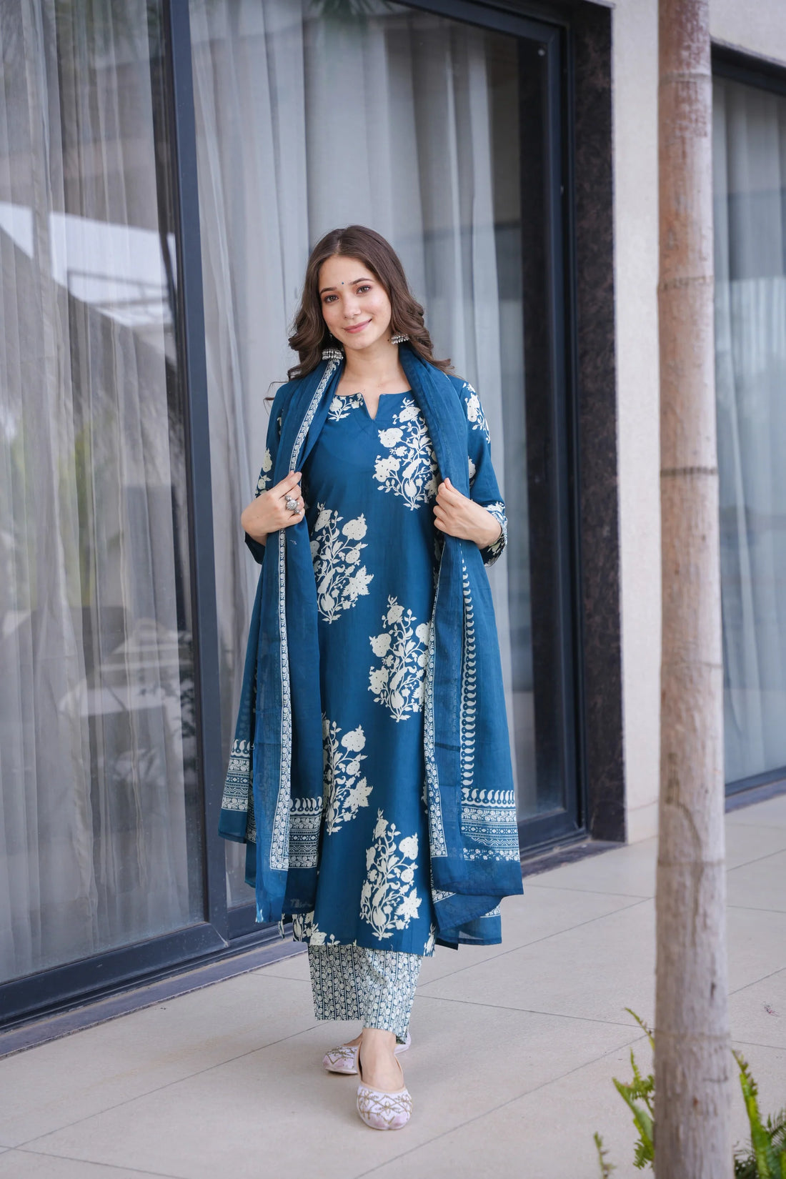 Comfort dressing meets timeless ethnic charm with the Ramya Blue Cotton Suit Set by Reet Lifestyle. Thoughtfully designed for everyday elegance, this outfit brings together breathable fabric, traditional handblock artistry, and practical tailoring, making it a dependable choice for office wear, casual outings, and relaxed festive days.