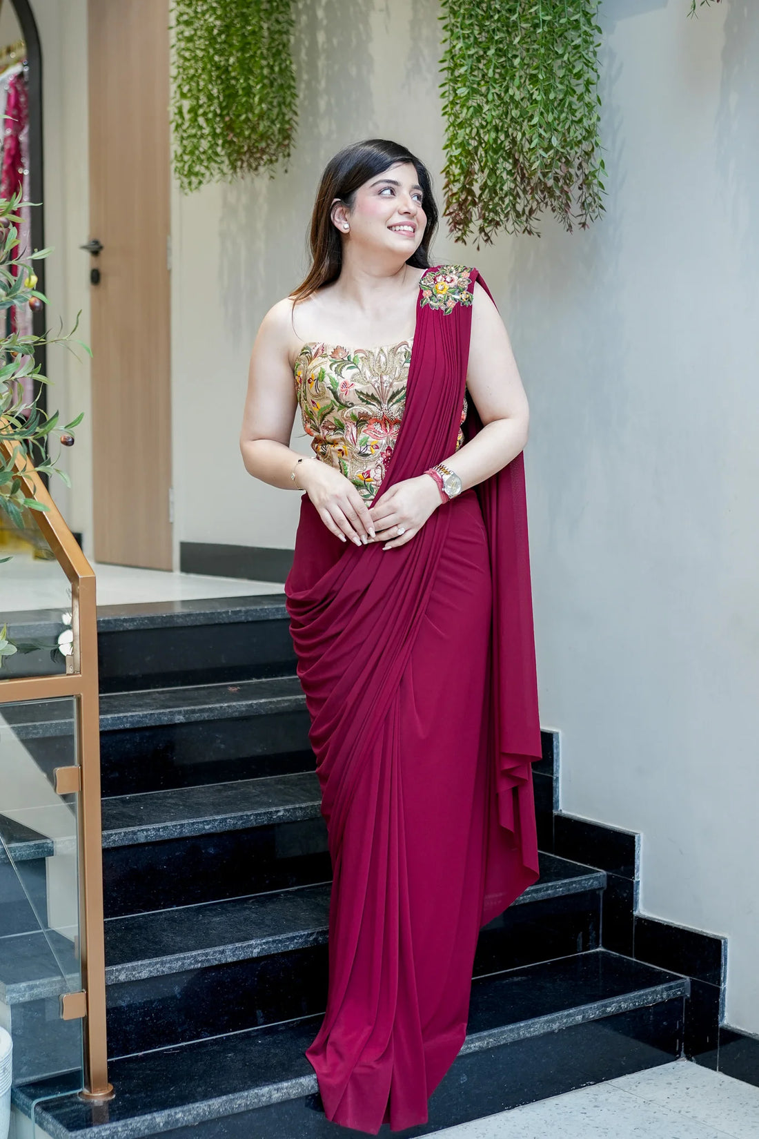 The Sawana Embroidered Corset Saree is a striking blend of modern design and traditional Indian elegance. Featuring a beautifully embroidered corset blouse paired with a flowing saree, this ensemble offers a contemporary twist on classic ethnic wear. Its intricate embroidery, luxurious fabric, and graceful drape make it perfect for festive celebrations, weddings, and special occasions. Comfortable yet stylish, this saree ensures you radiate confidence and elegance at every event.