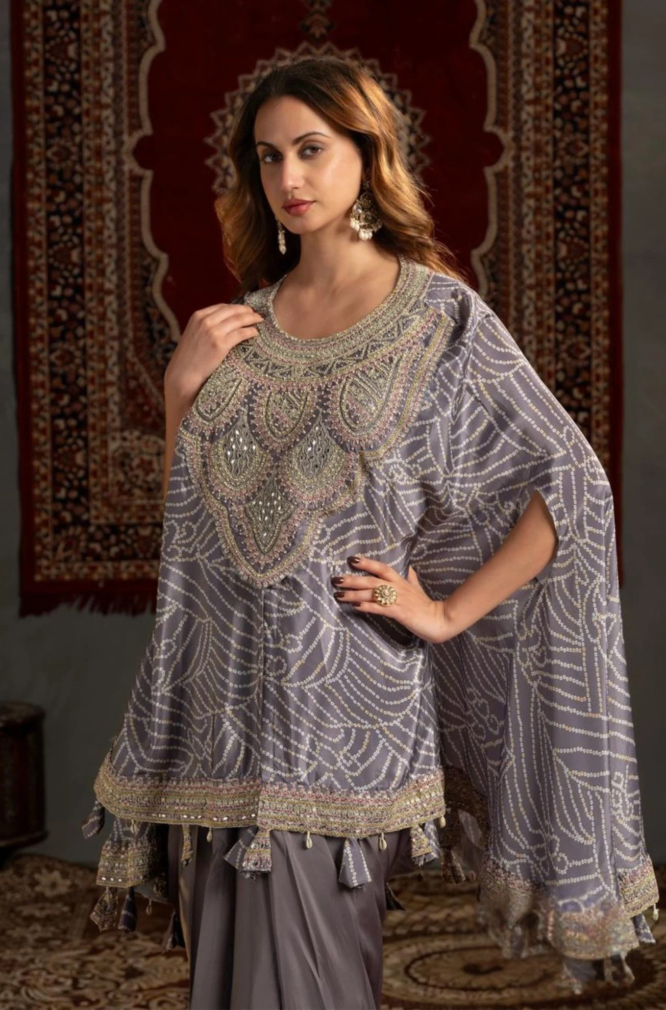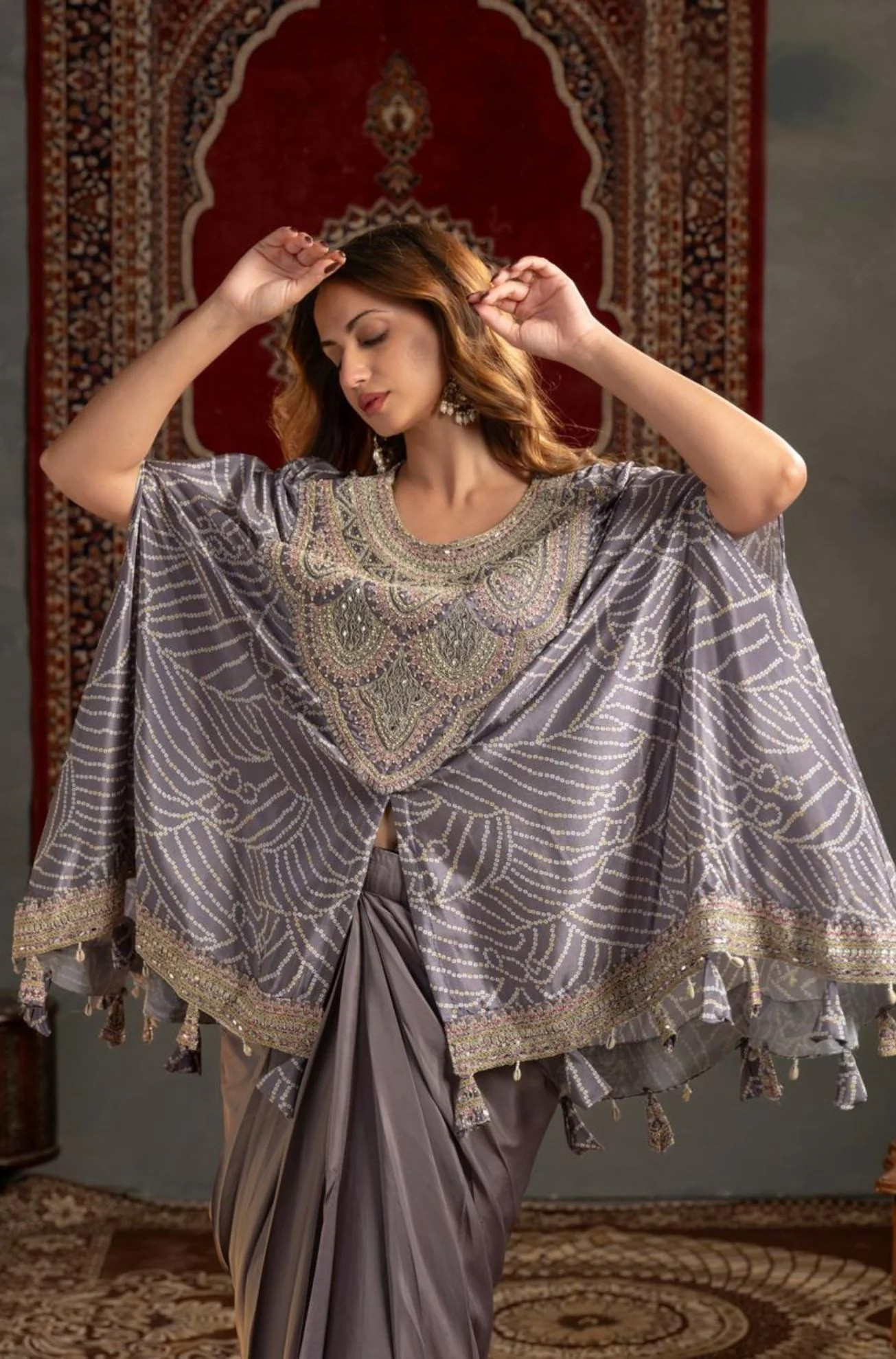 Add this Silk Moti Stone Drape Skirt Set to your festive wardrobe and shine with a perfect blend of luxury, elegance, and contemporary flair.