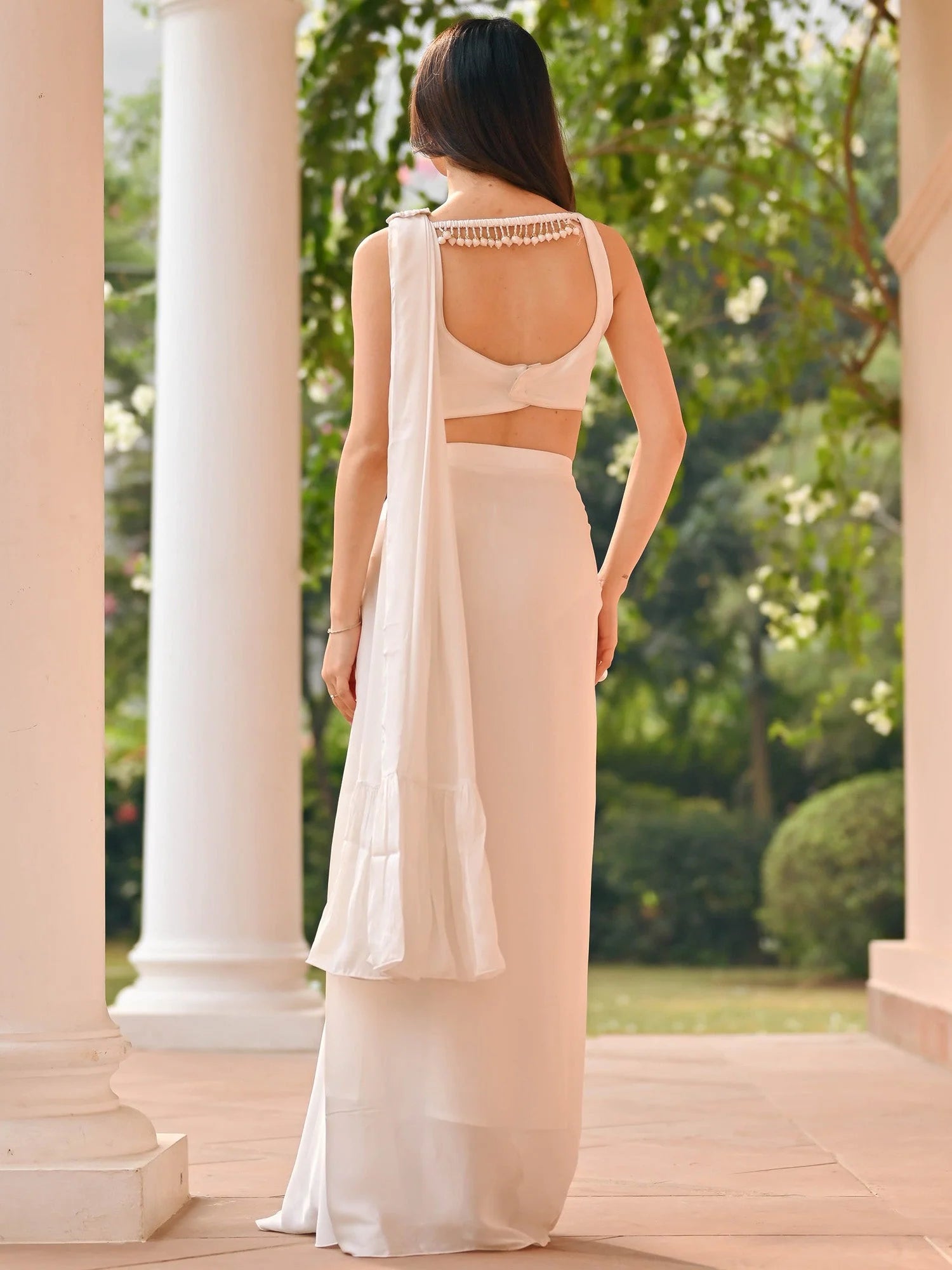 The White Georgette Handwork Skirt Top Set brings a fresh, elegant, and festive charm to your wardrobe. Designed in soft georgette, it features refined handwork that adds a subtle yet captivating sparkle. The sleeveless top with a stylish square neckline paired with a flowy skirt creates a modern, graceful silhouette perfect for celebrations.