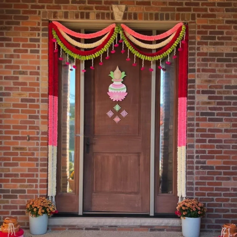 Make your entrance memorable with this White Pink Fabric Toran Set – a perfect mix of tradition, elegance, and festive charm.