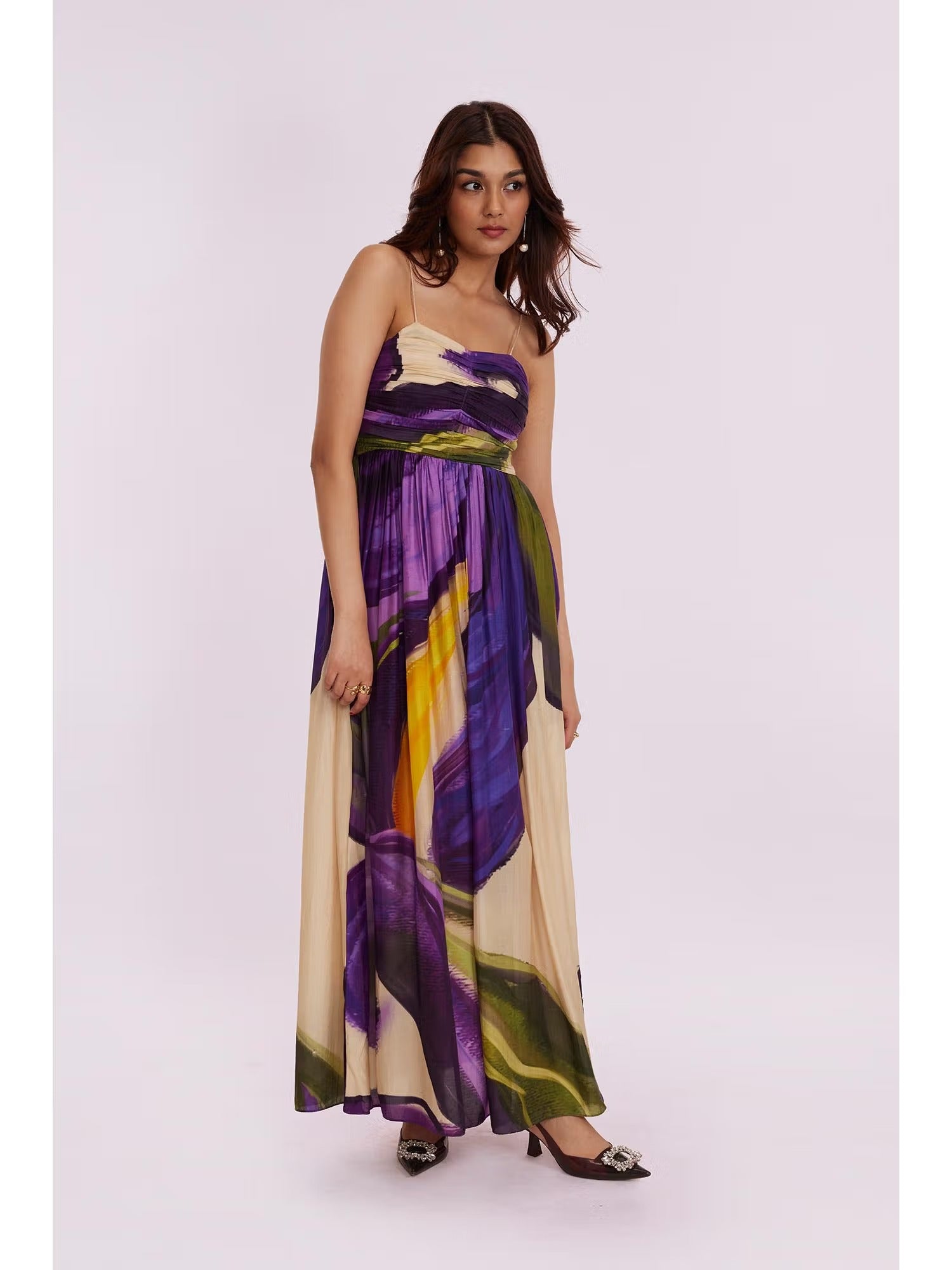 The Wisteria Viscose Printed Maxi Dress offers a graceful, flowing silhouette crafted from soft viscose fabric. Its vibrant printed pattern and comfortable fit make it perfect for casual outings, brunches, or relaxed day events. The adjustable shoulder straps provide a flattering drape, combining ease and style in one timeless piece.