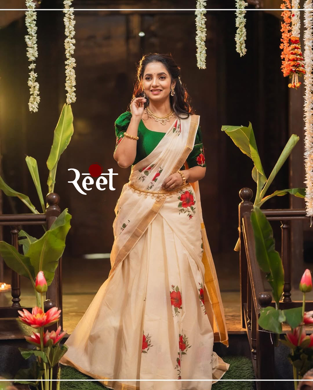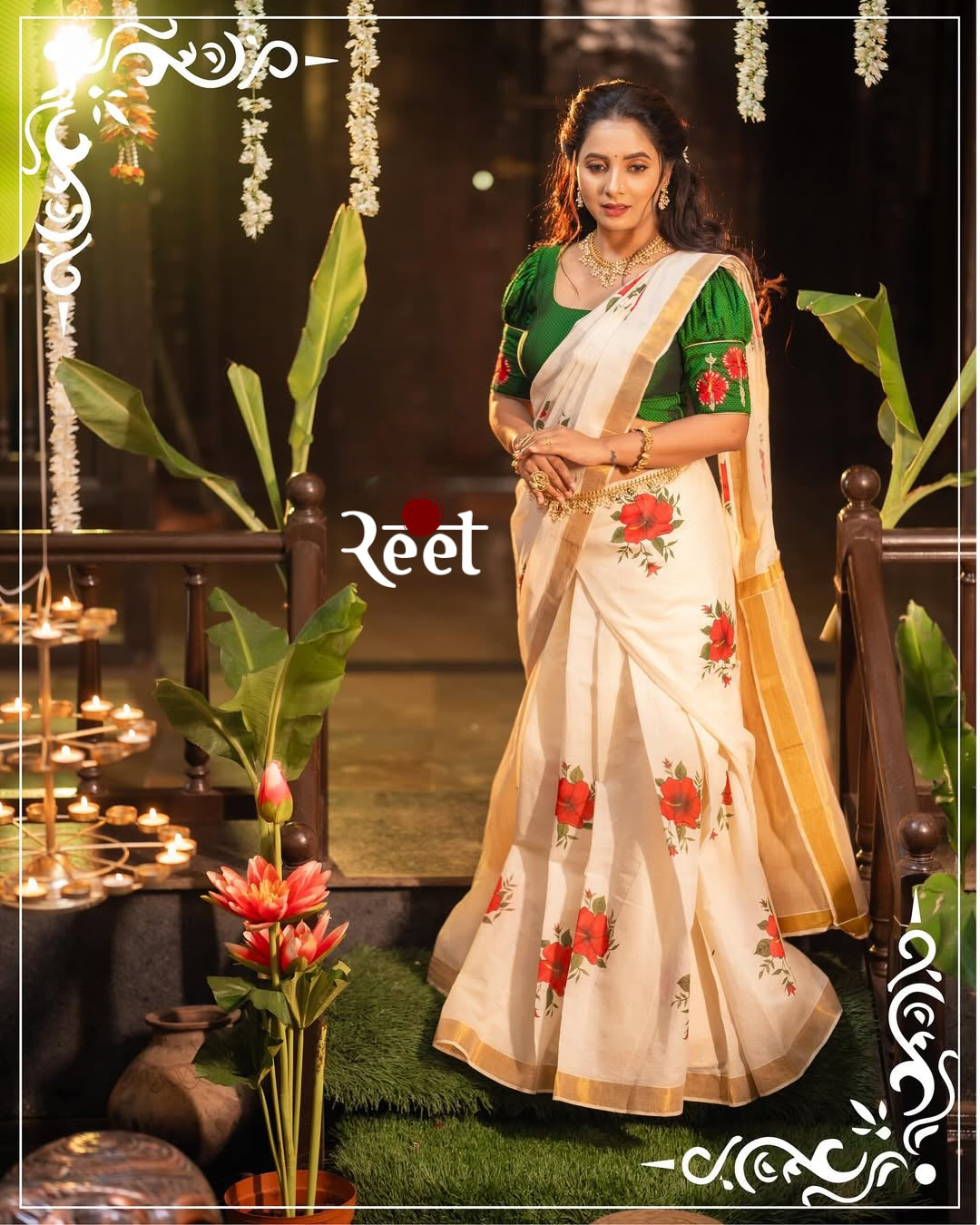 The Women’s White Khann Saree with Blouse is thoughtfully designed to reflect purity, devotion, and celebration. Inspired by the hibiscus flower offered to Lord Ganesha, this saree carries deep symbolic meaning. Its pure white body is paired with golden borders and hibiscus motifs, creating a unique and graceful combination rooted in cultural belief.